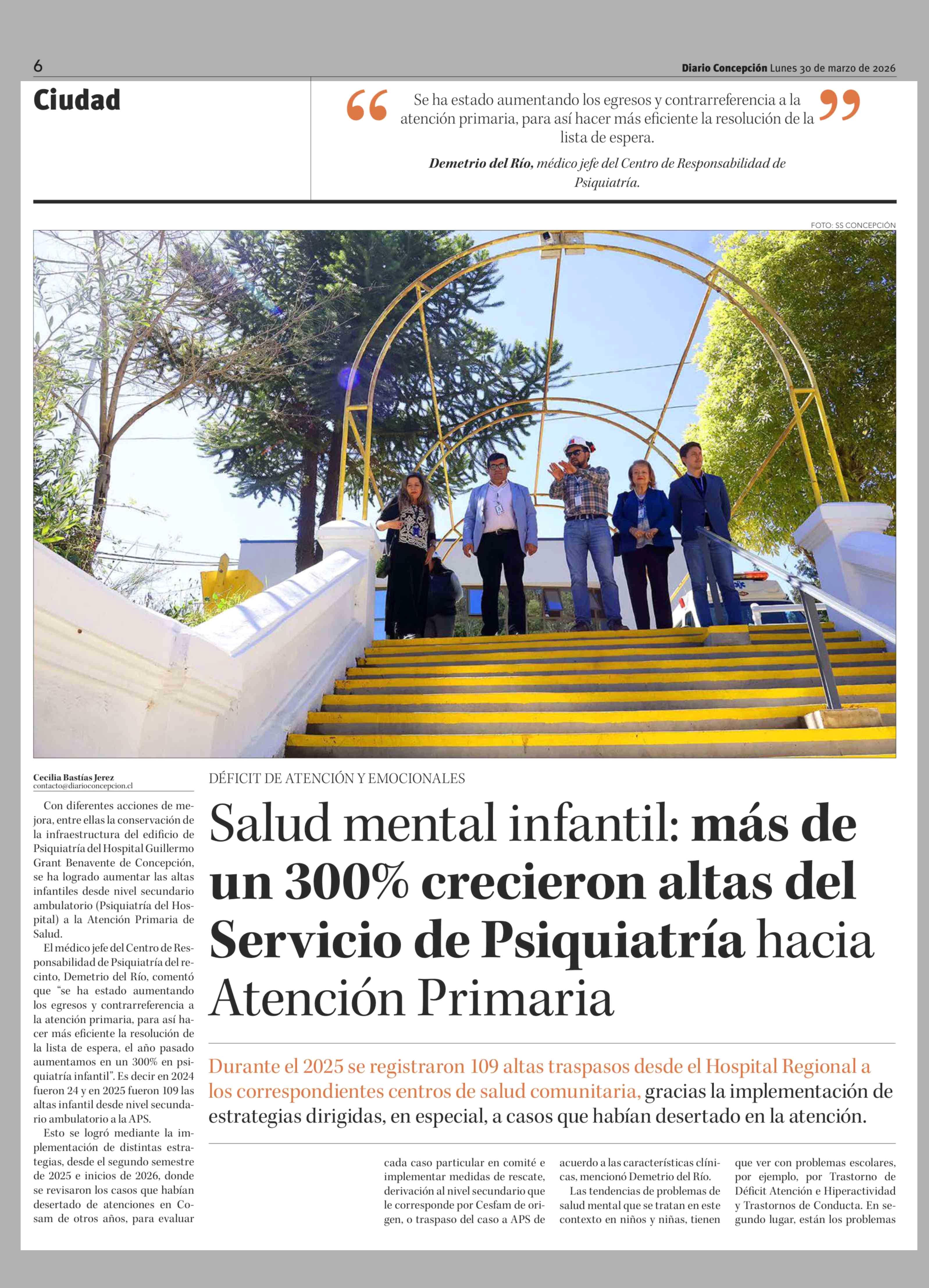 Salud mental infantil: más de un 300% crecieron altas del Servicio de Psiquiatría hacia Atención Primaria 31-03-2026 Diario Concepción |