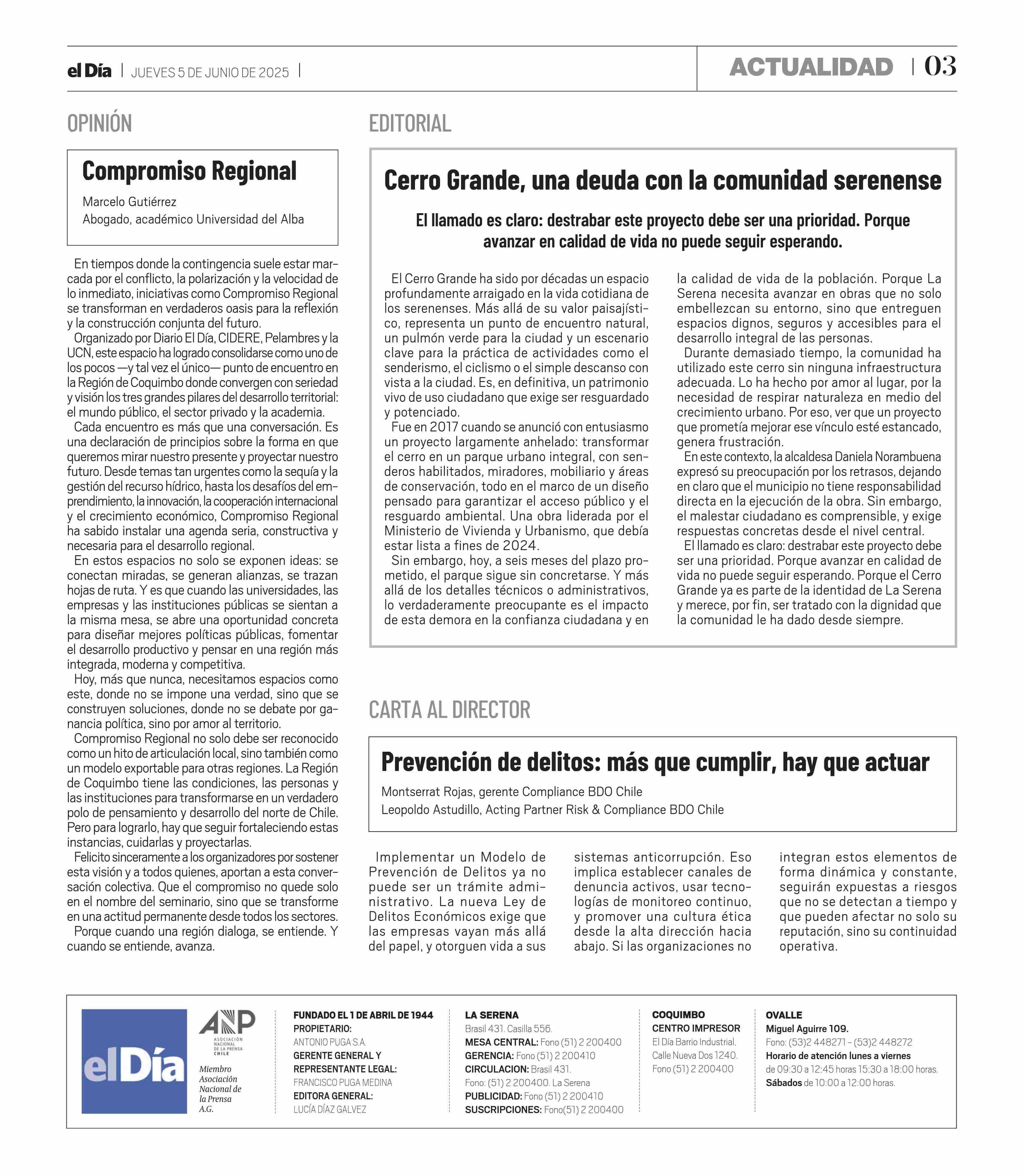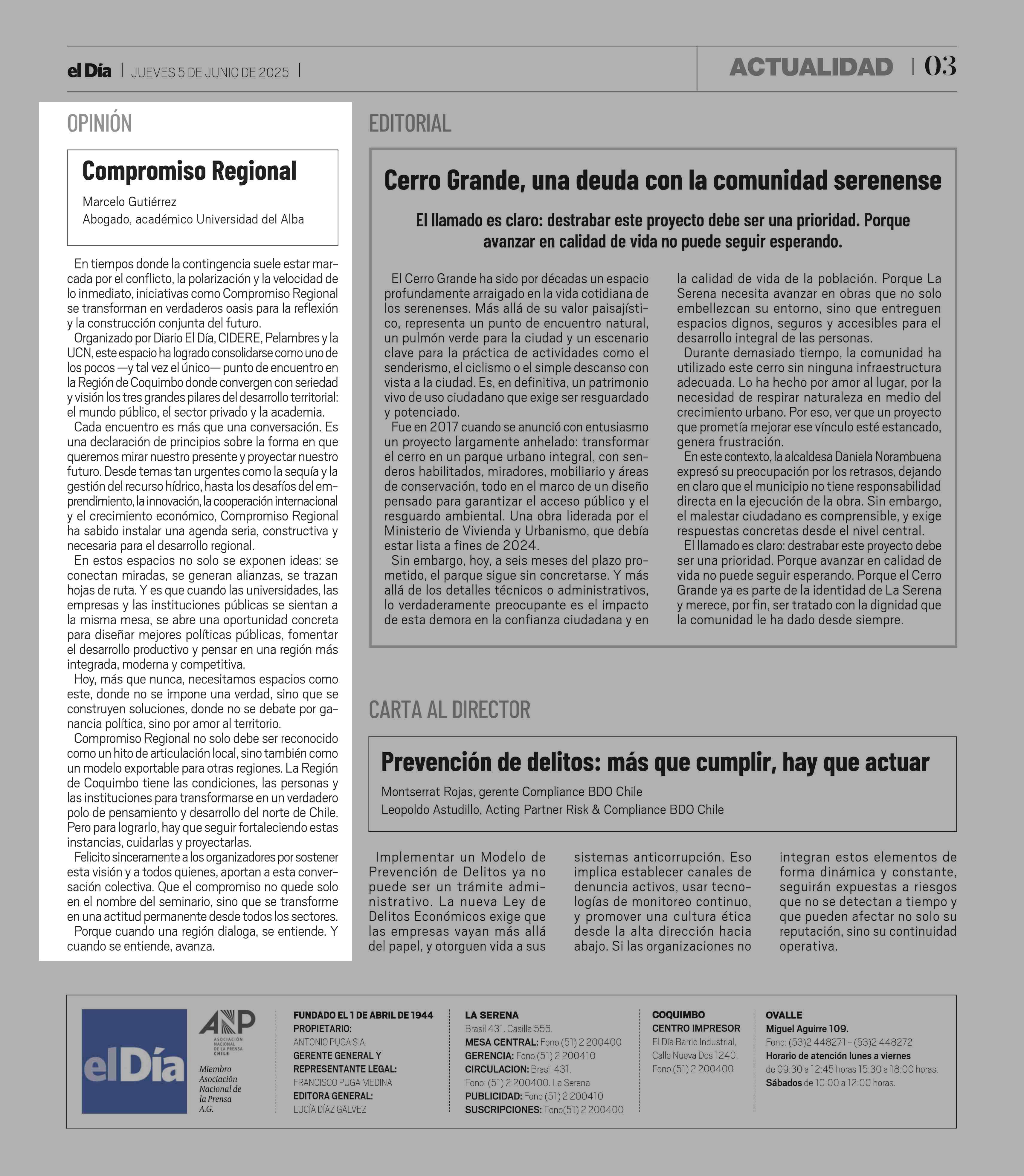 COLUMNAS DE OPINIÓN: Compromiso Regional 05-06-2025 El Día |