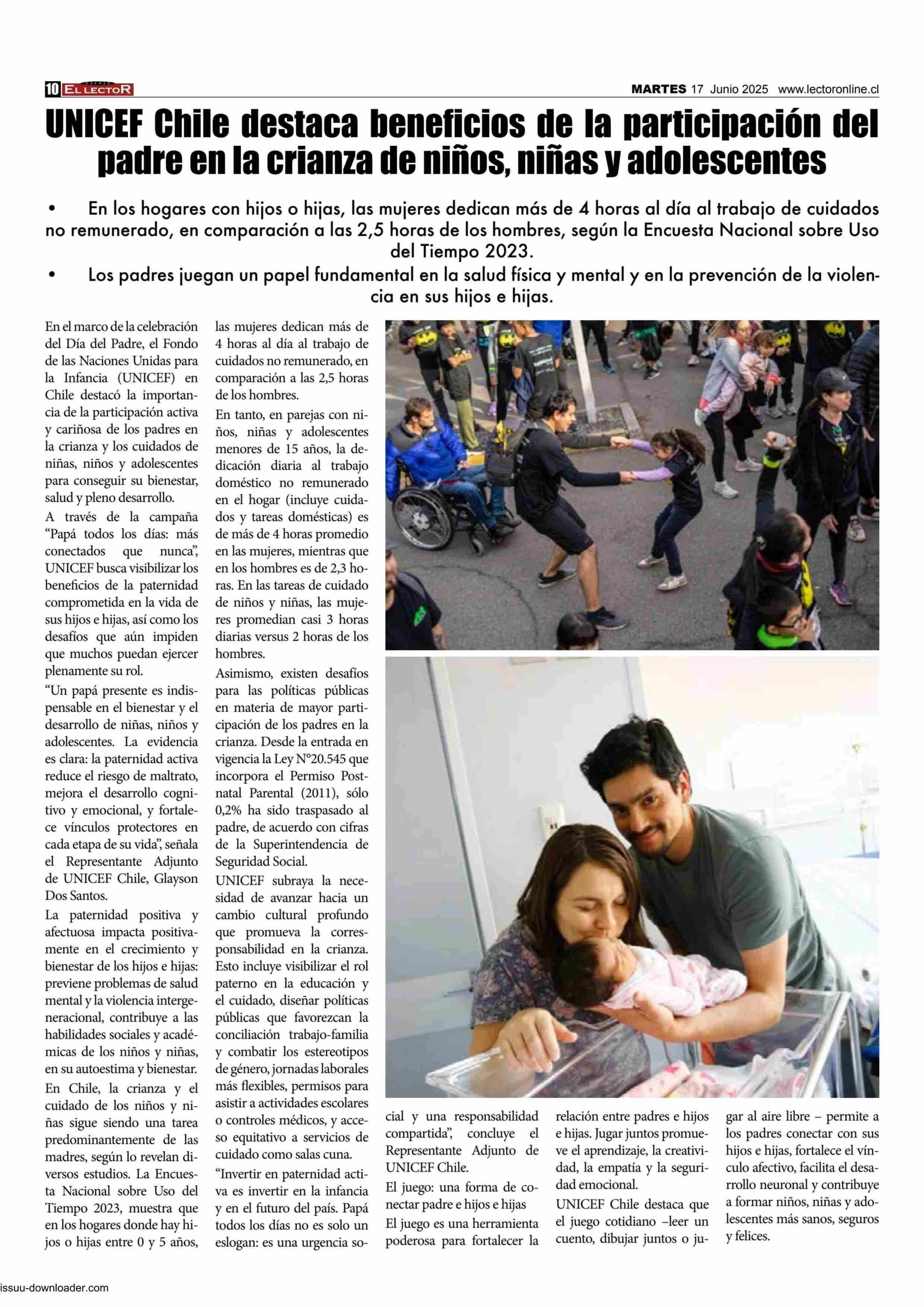 UNICEF Chile destaca beneficios de la participación del padre en la crianza de niños, niñas y adolescentes 17-06-2025 El Lector |