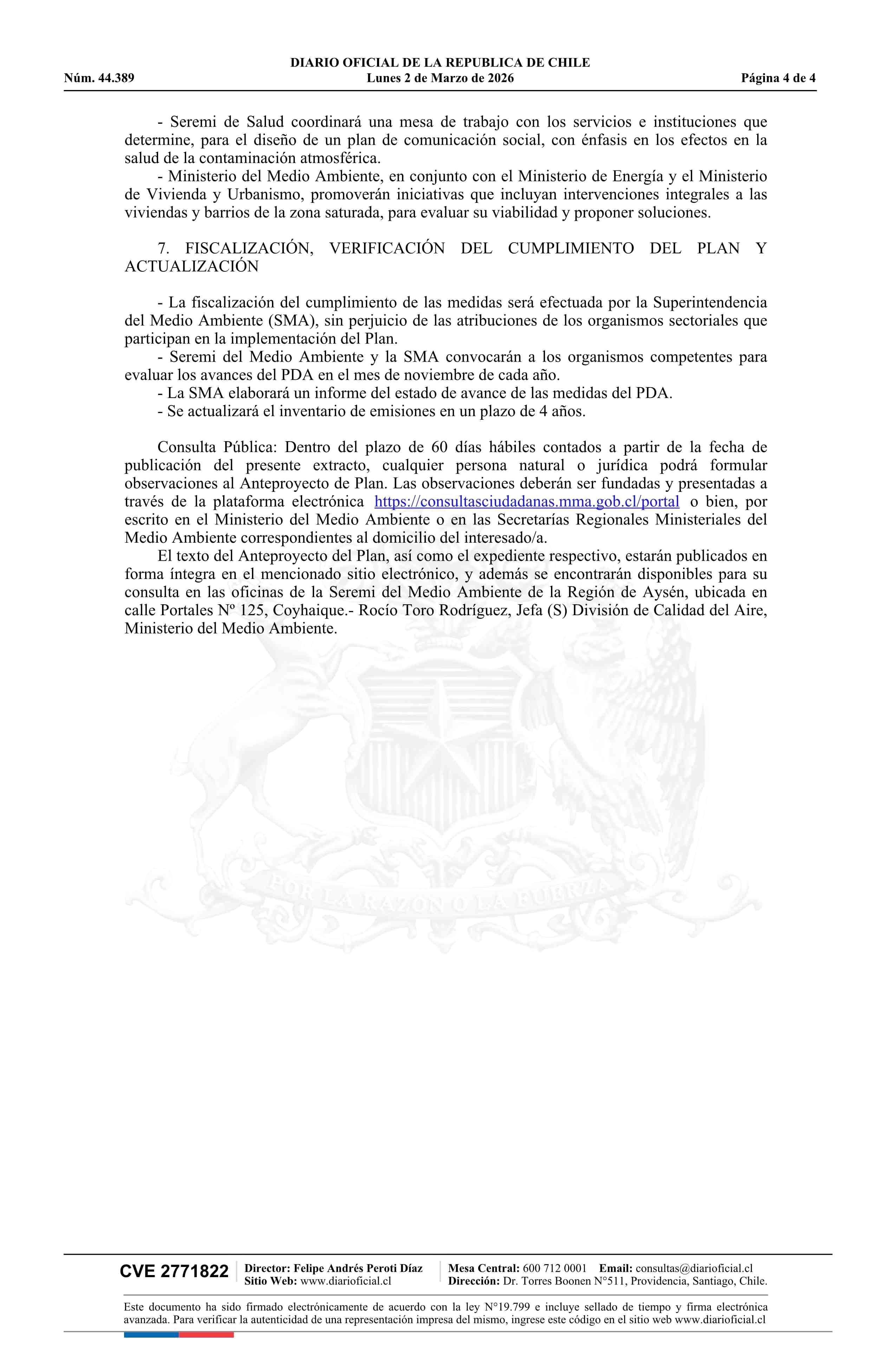 | Título: | Extracto de resolución exenta número 8.940, de 2025.- Aprueba anteproyecto del Plan de Descontaminación Atmosférica para la ciudad de Coyhaique y su zona circundante, y lo somete a consulta pública |