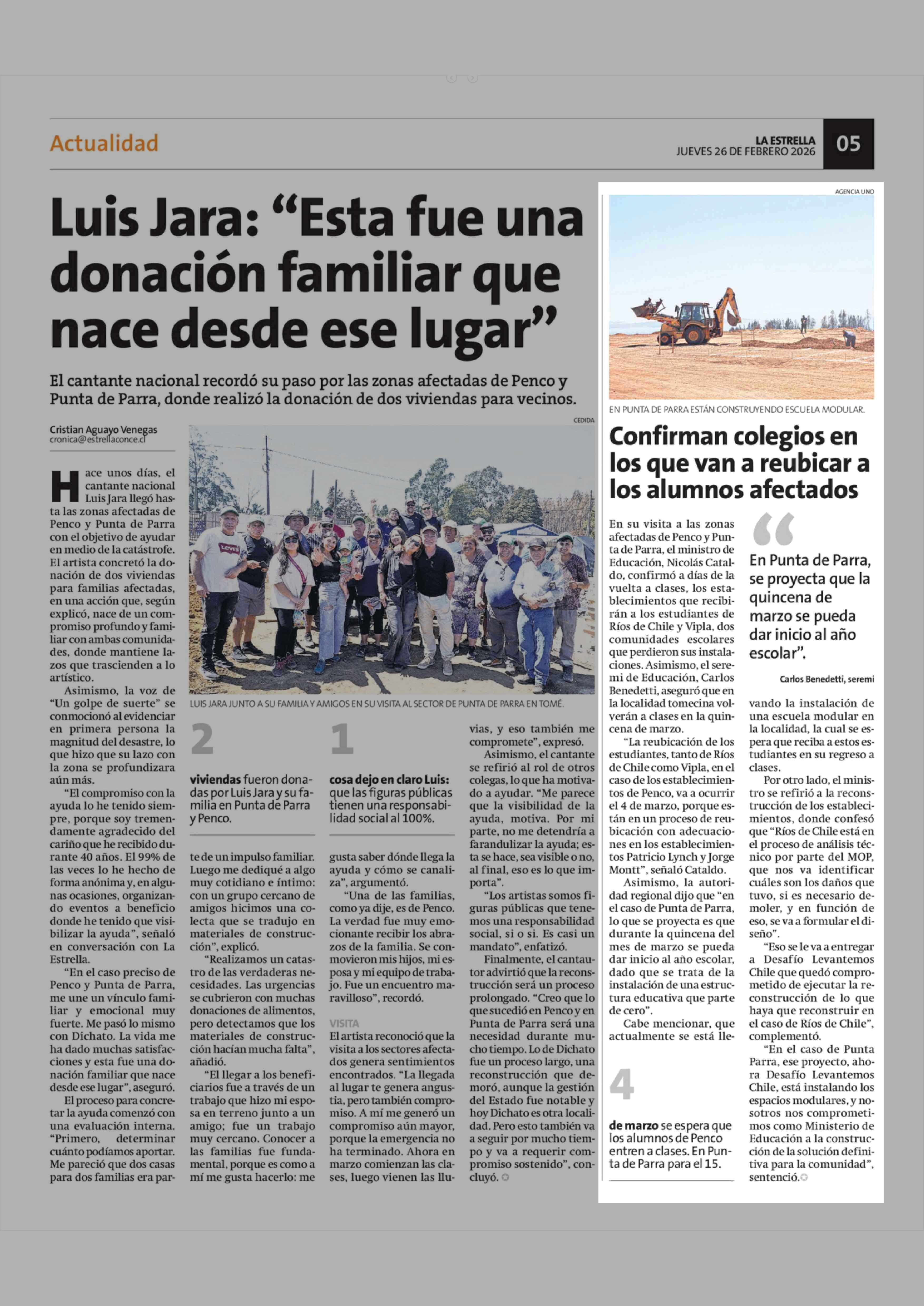 Confirman colegios en los que van a reubicar a los alumnos afectados 26-02-2026 La Estrella de Concepción |