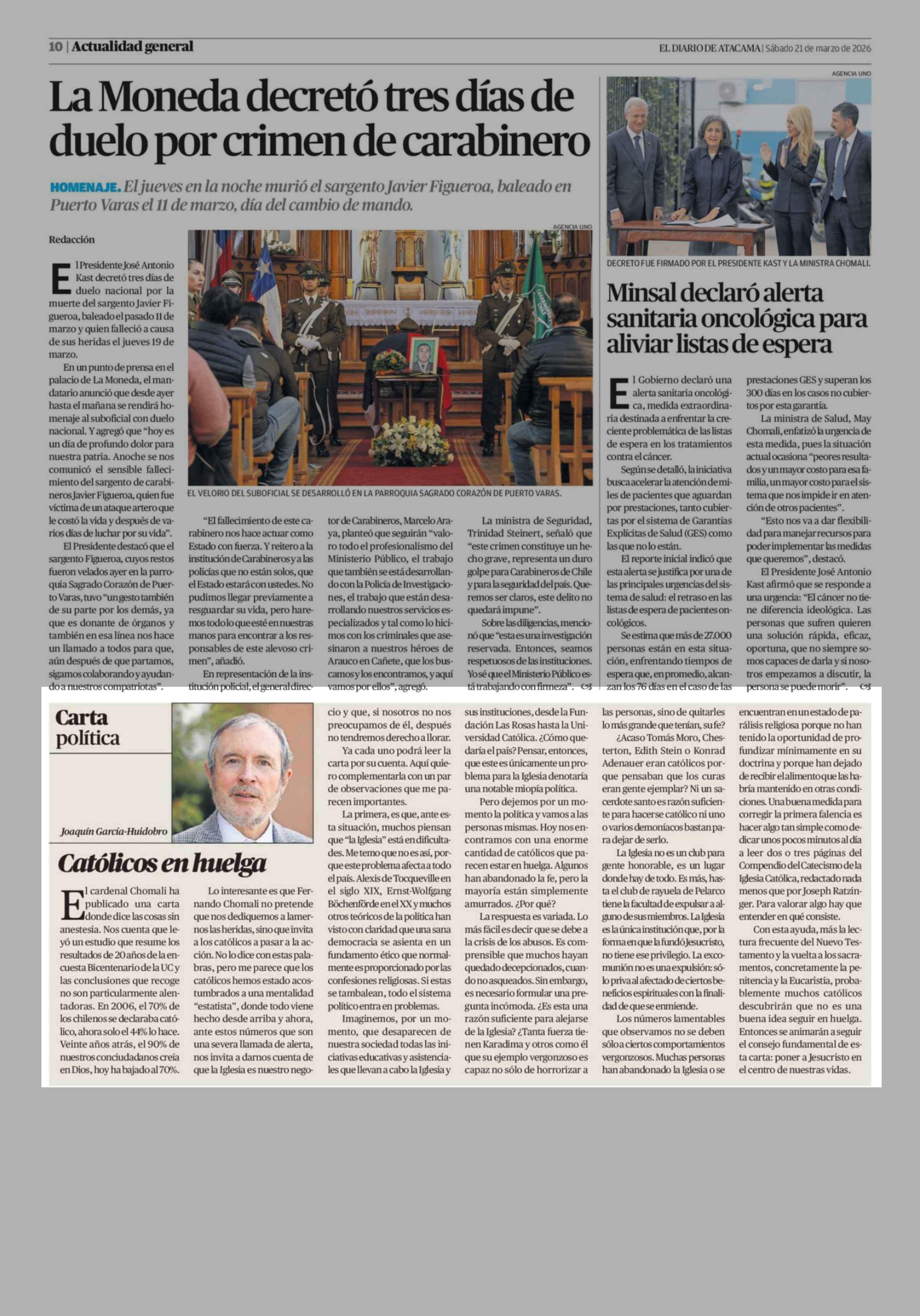 Columnas de Opinión: Católicos en huelga 21-03-2026 El Diario de Atacama |
