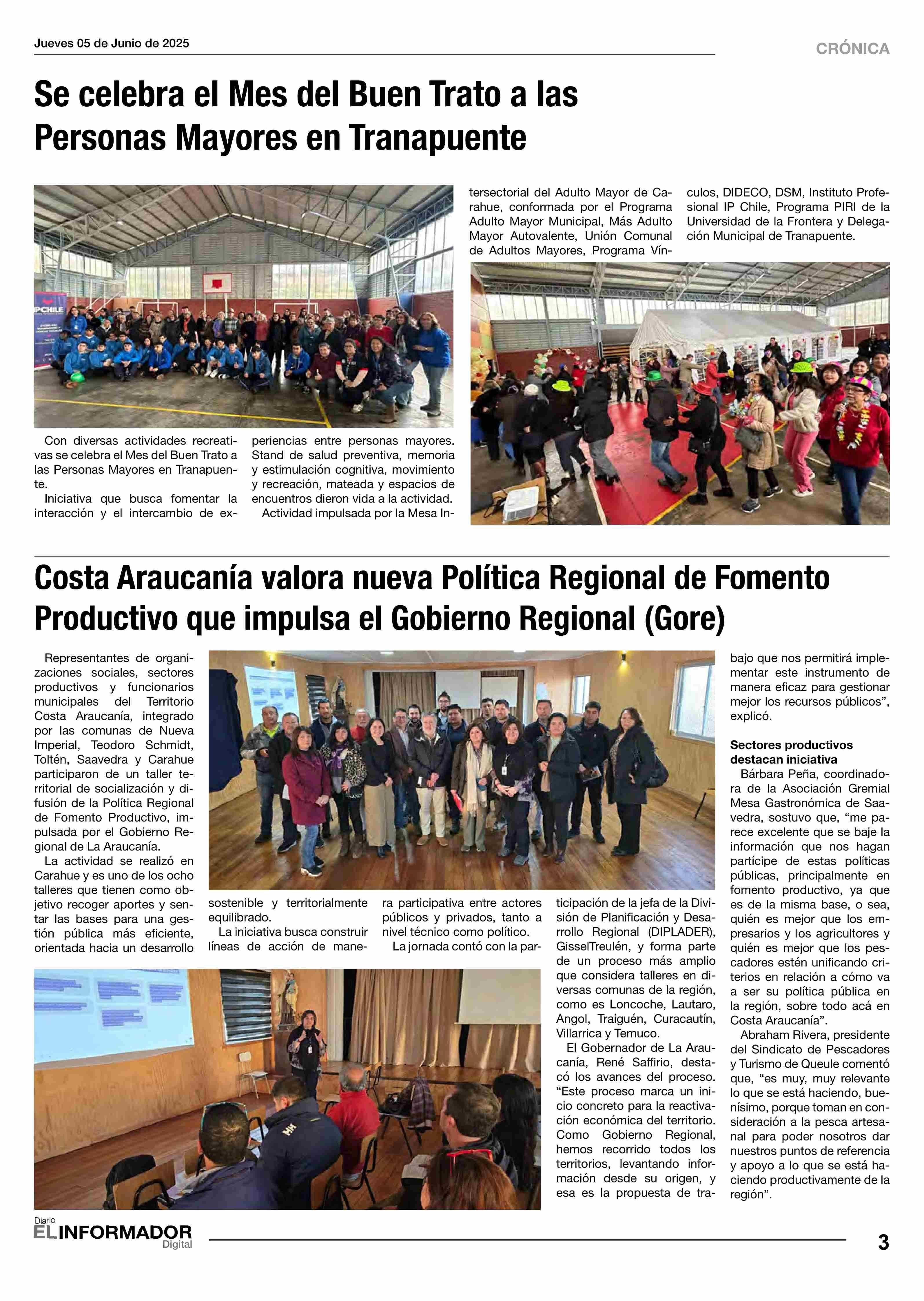 Costa Araucanía valora nueva Política Regional de Fomento Productivo que impulsa el Gobierno Regional (Gore) 05-06-2025 El Informador |