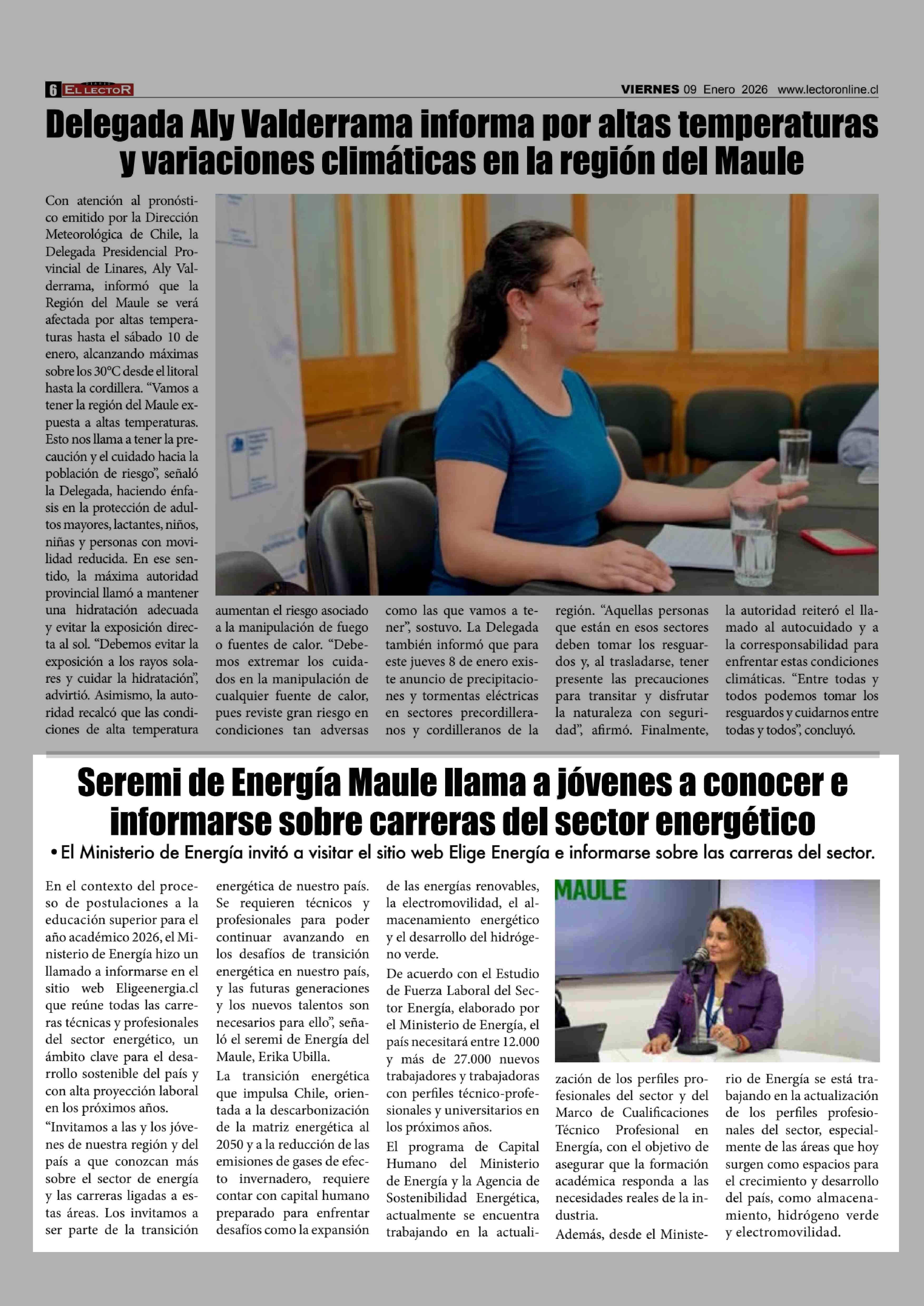 Seremi de Energía Maule llama a jóvenes a conocer e informarse sobre carreras del sector energético 09-01-2026 El Lector |