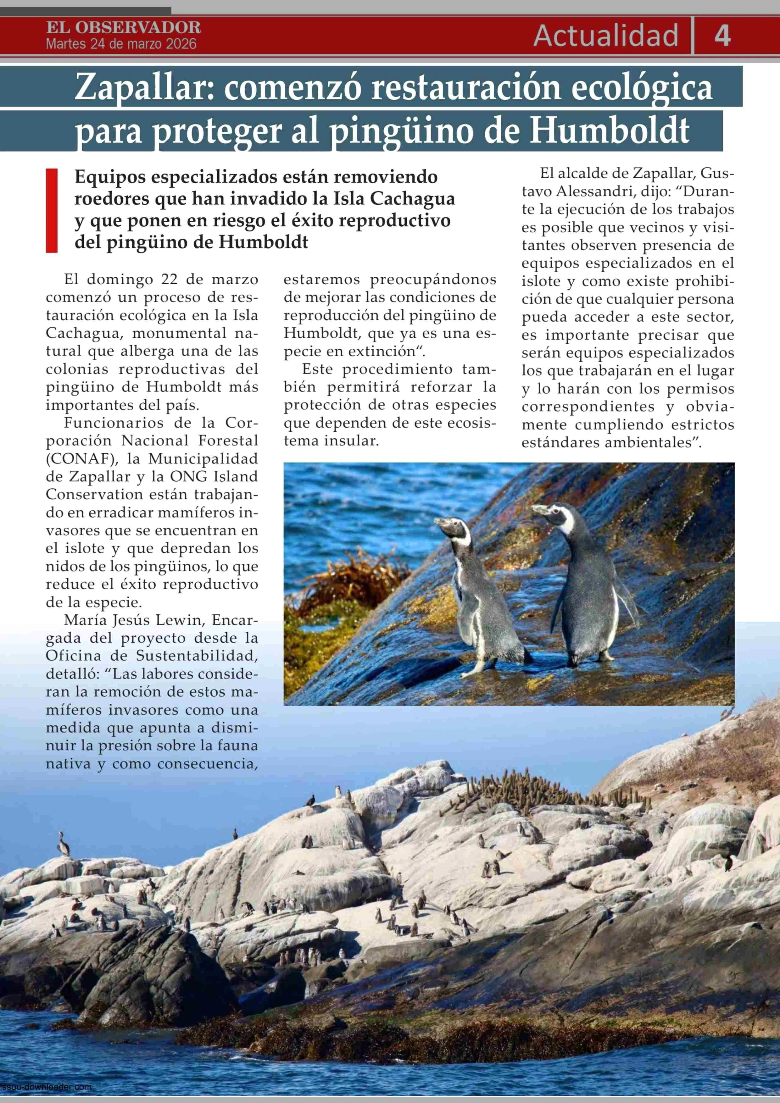 Título: Zapallar: comenzó restauración ecológica para proteger al pinguino de Humboldt
