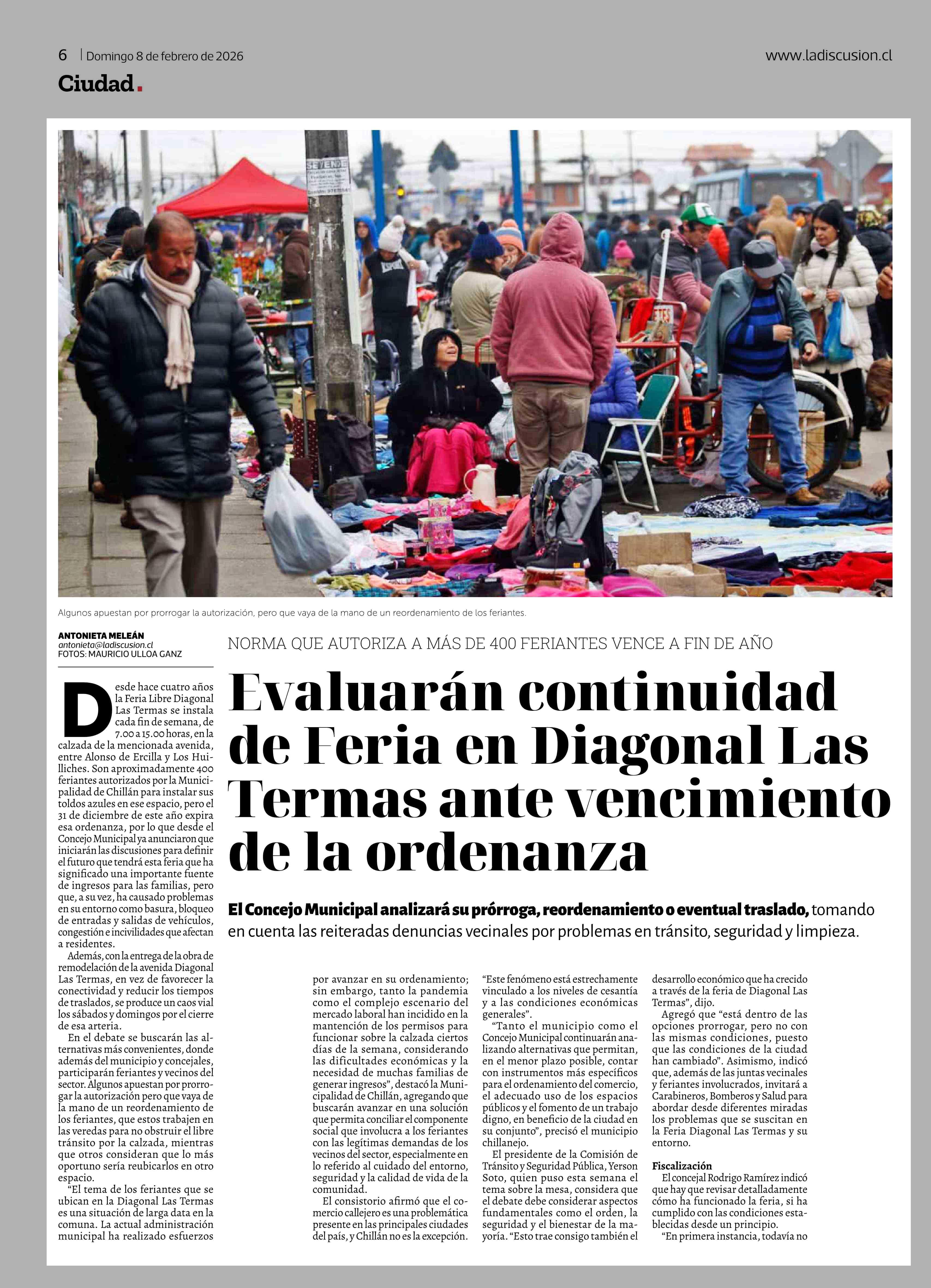 Evaluarán continuidad de Feria en Diagonal Las Termas ante vencimiento de la ordenanza 08-02-2026 La Discusión |