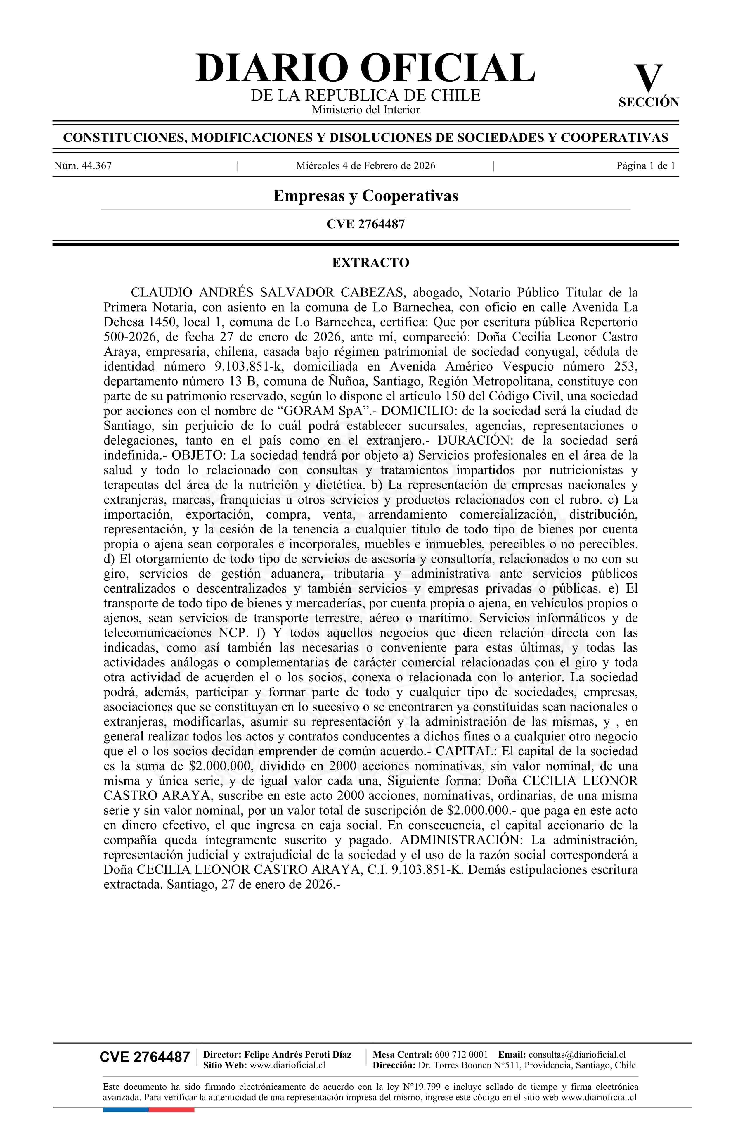 GORAM SpA 04-02-2026 Diario Oficial Edición Electrónica |