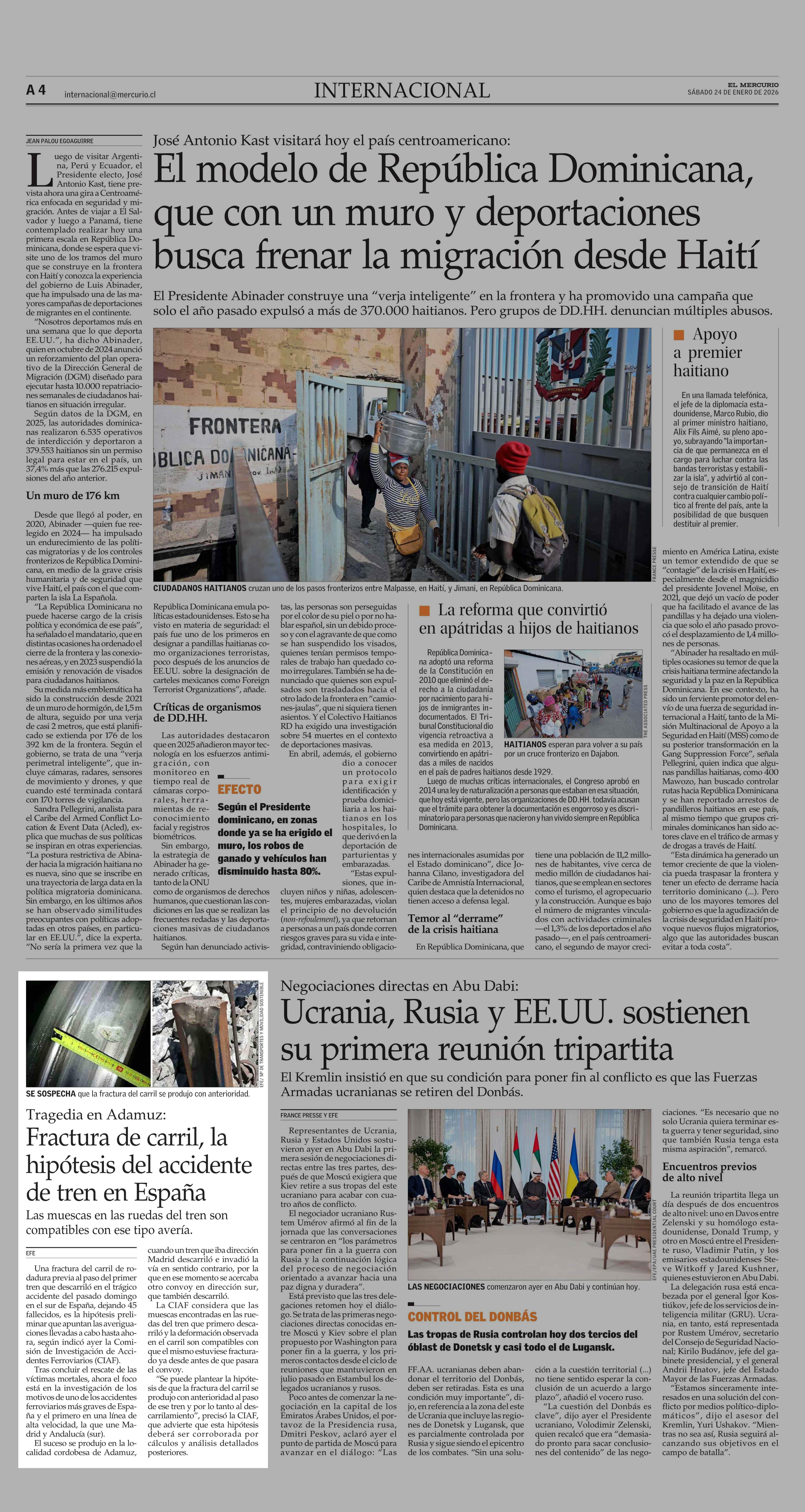 Fractura de carril, la hipótesis del accidente de tren en España 24-01-2026 El Mercurio |