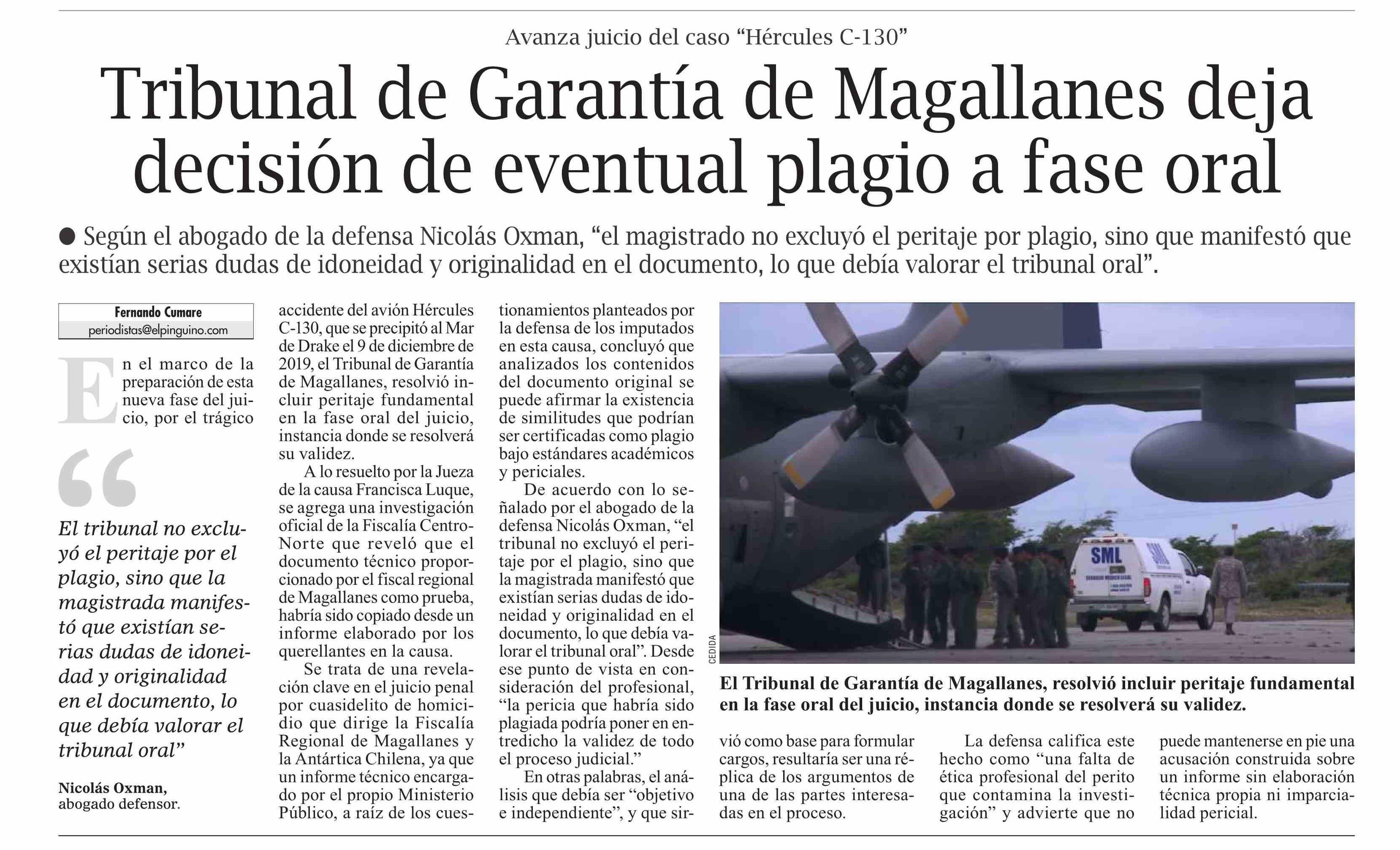 Tribunal de Garantía de Magallanes deja decisión de eventual plagio a fase oral 15-06-2025 El Pingüino |