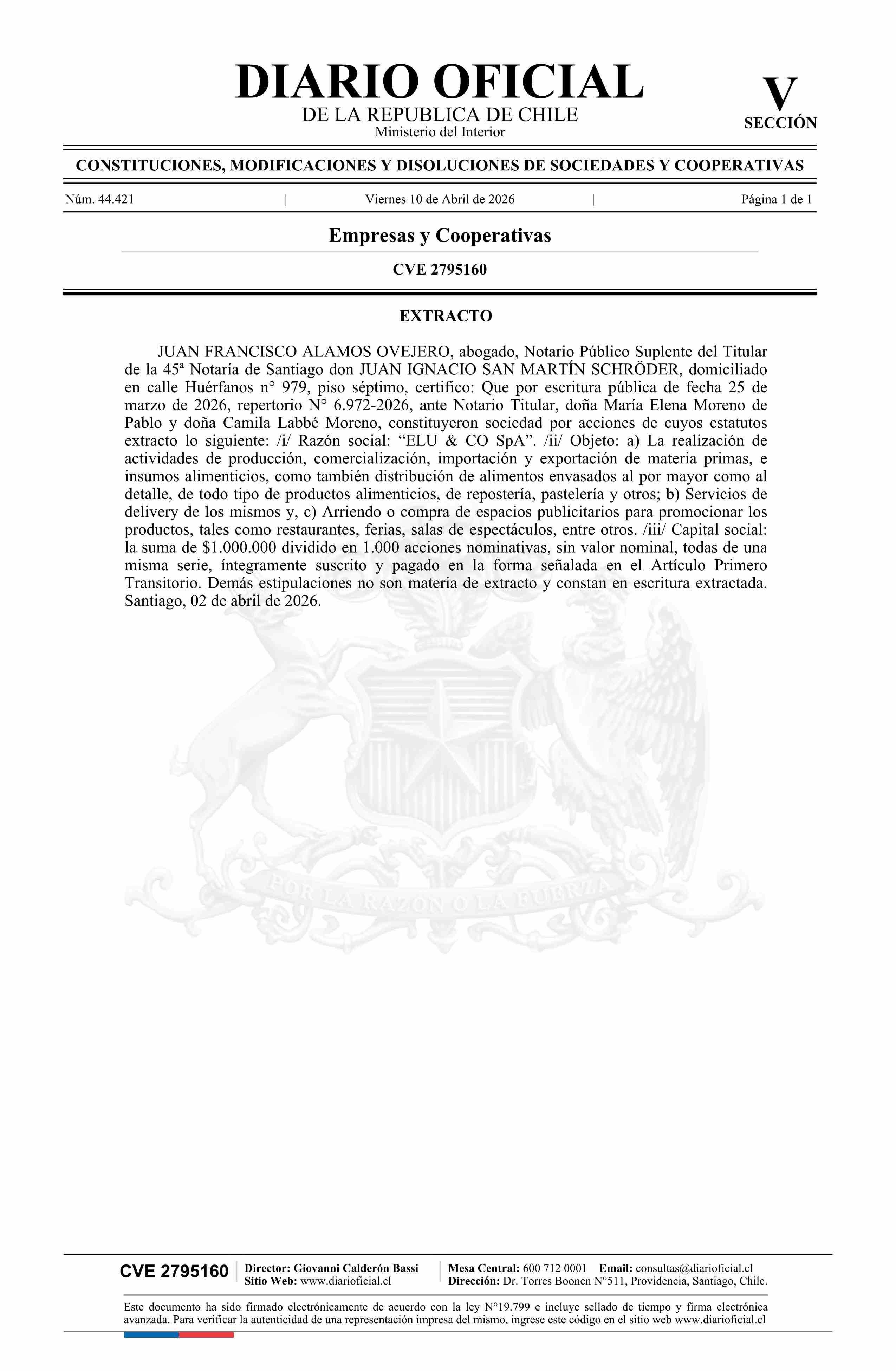 Fuente: Diario Oficial Edición Electrónica (Diario Oficial de Chile - 5 Empresas Y Cooper) Página(s): 41