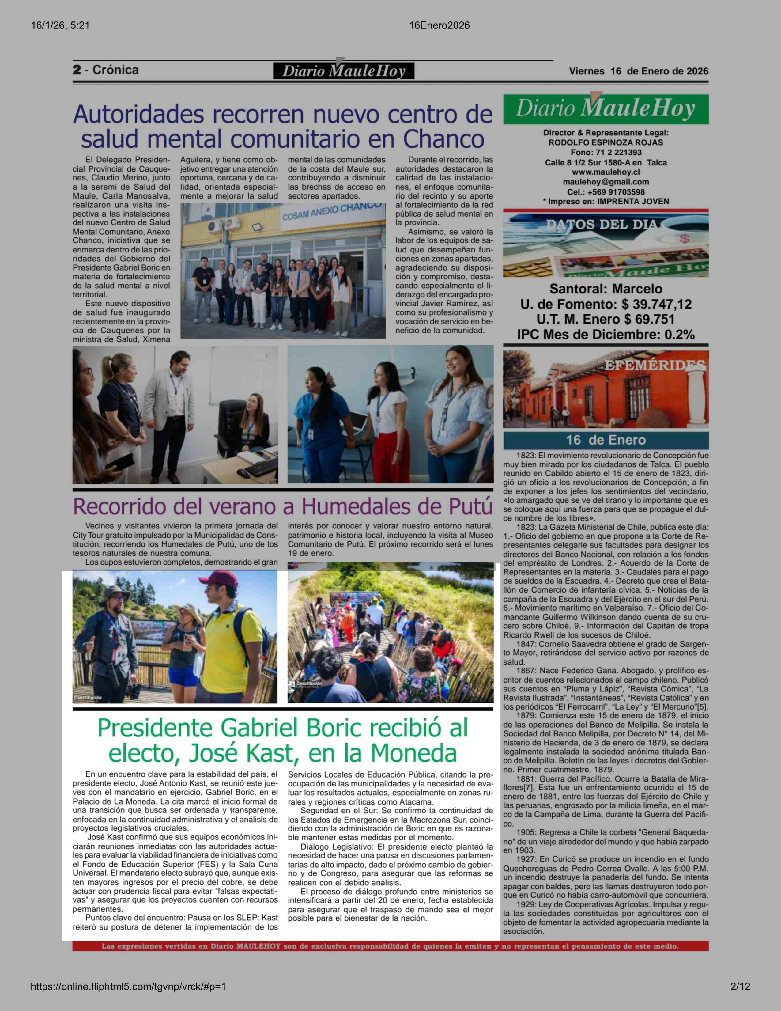 | Fecha: | 16-01-2026 | Sector: | Noticia general | Región: | Región del Maule |