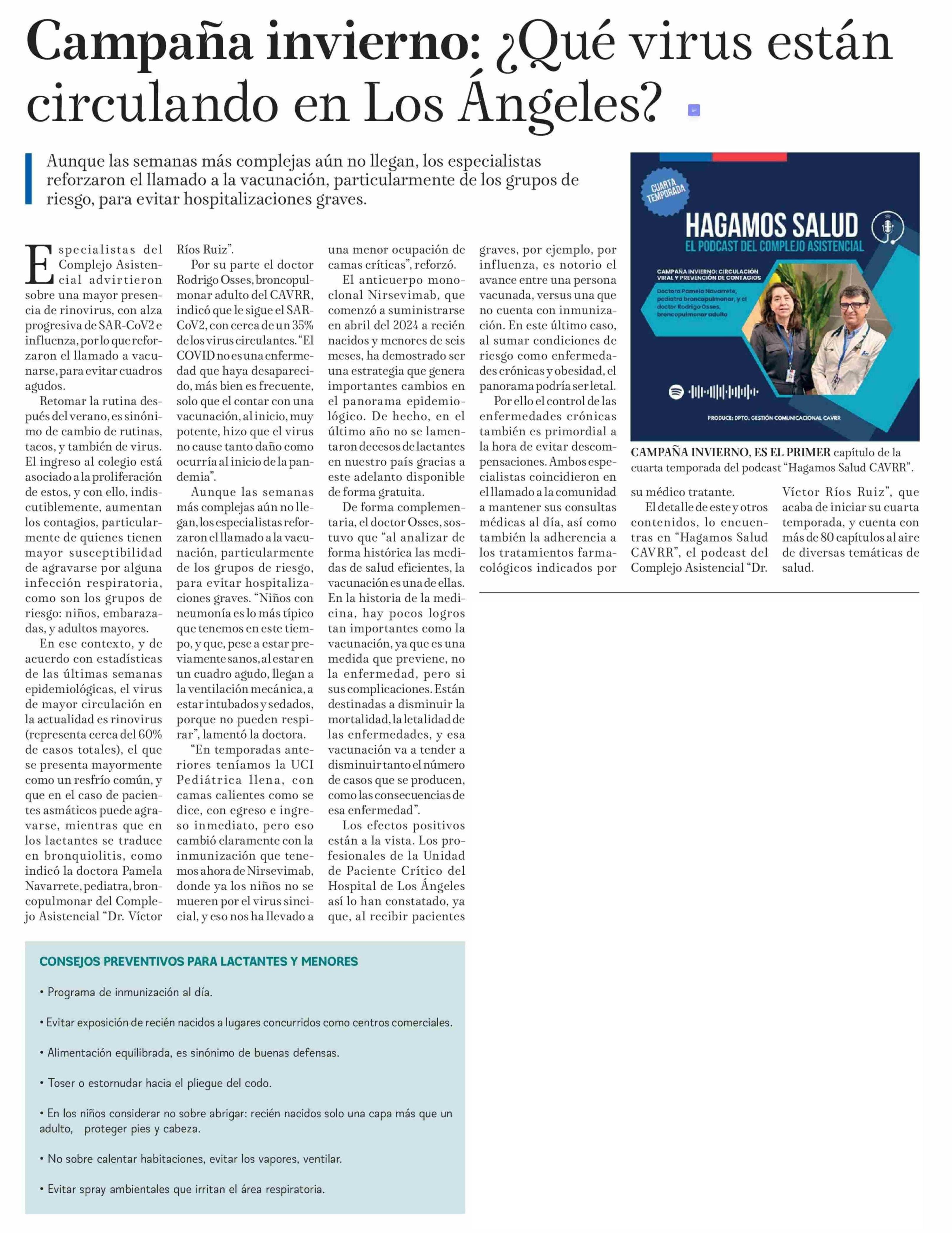 Campaña invierno: ¿Qué virus están circulando en Los Angeles? 13-04-2026 La Tribuna |
