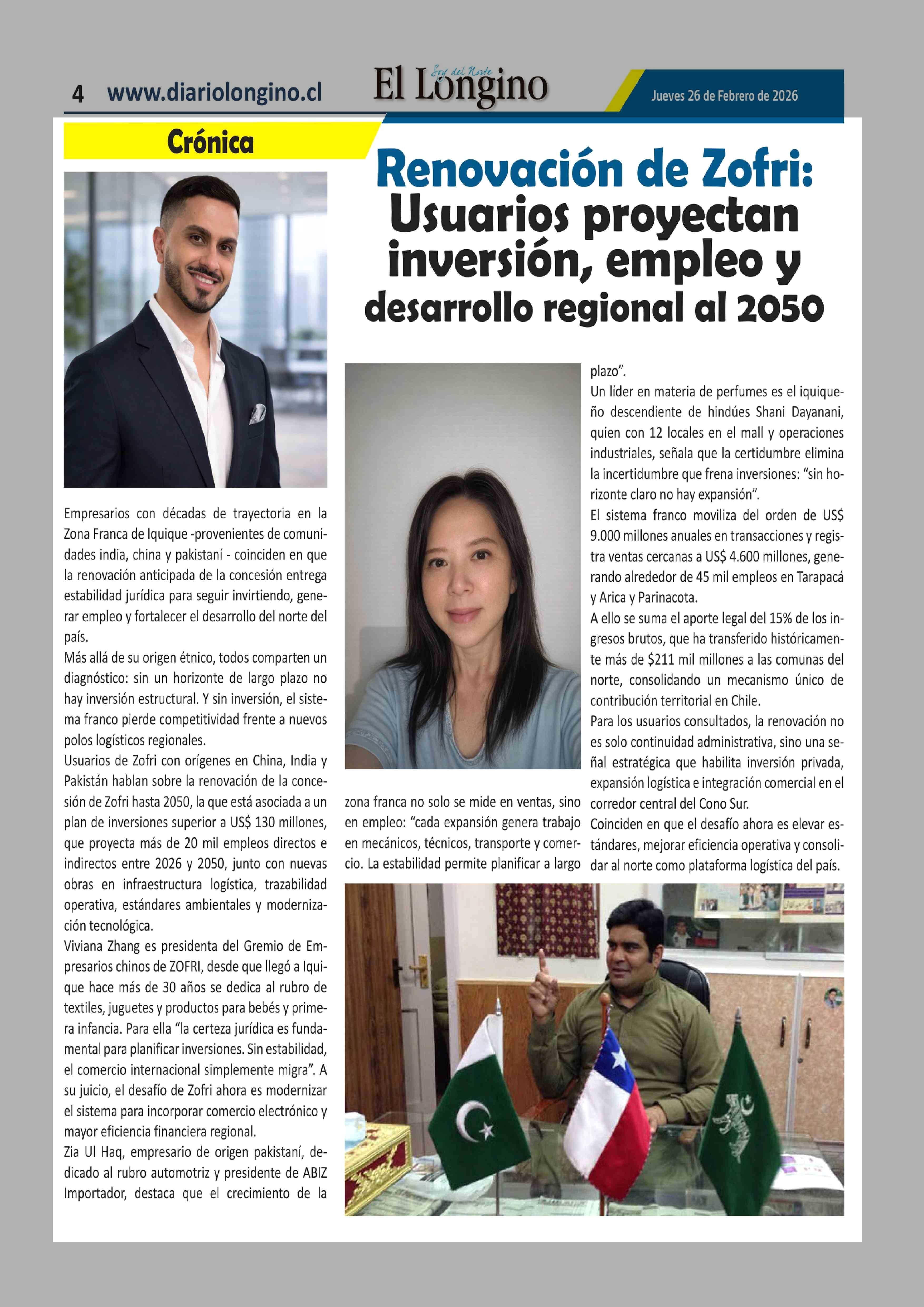 Renovación de Zofri: Usuarios proyectan inversión, empleo y desarrollo regional al 2050 26-02-2026 El Longino |
