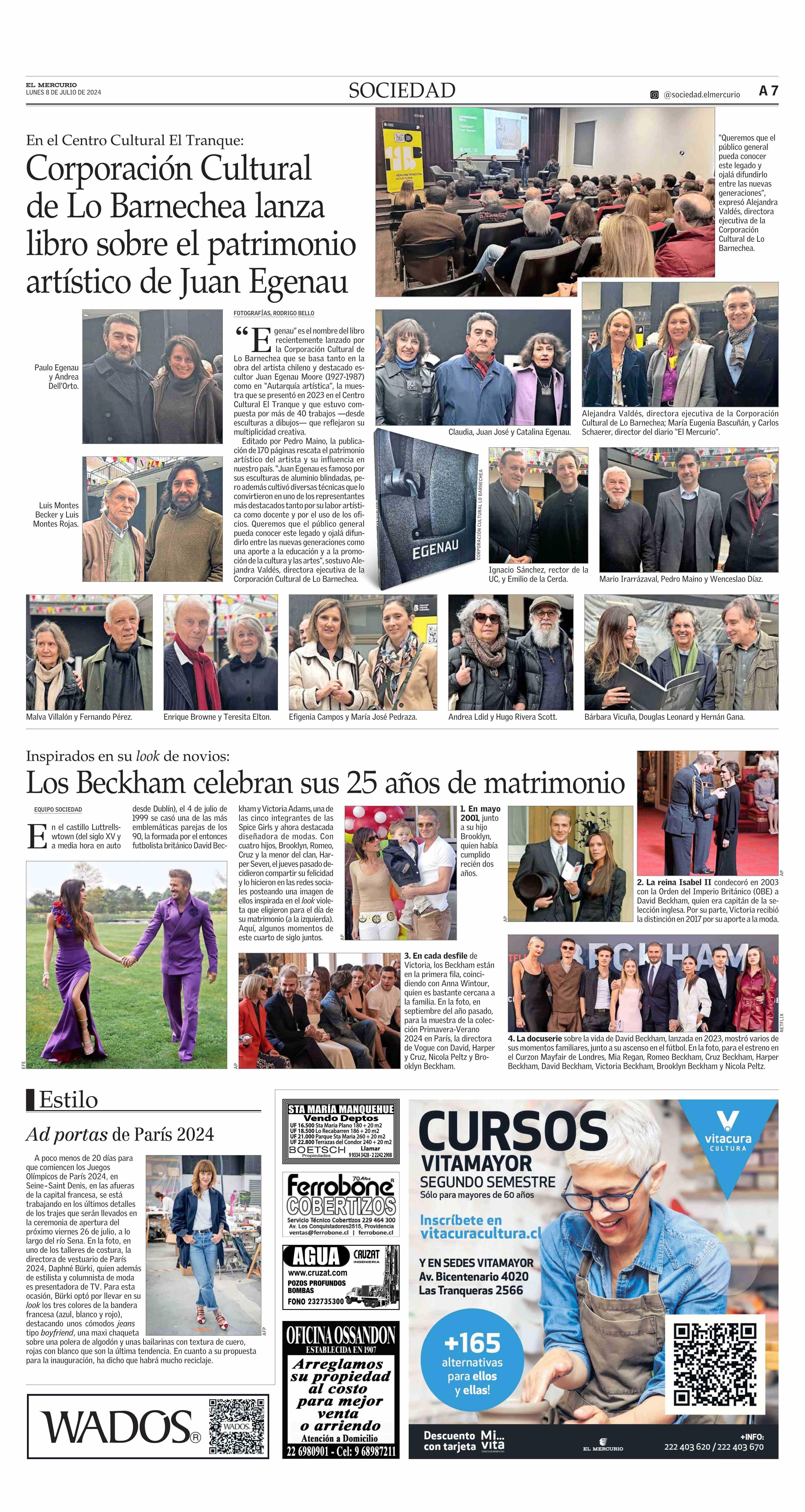 Corporación Cultural de Lo Barnechea lanza libro sobre el patrimonio artístico de Juan Egenau 08-07-2024 El Mercurio |
