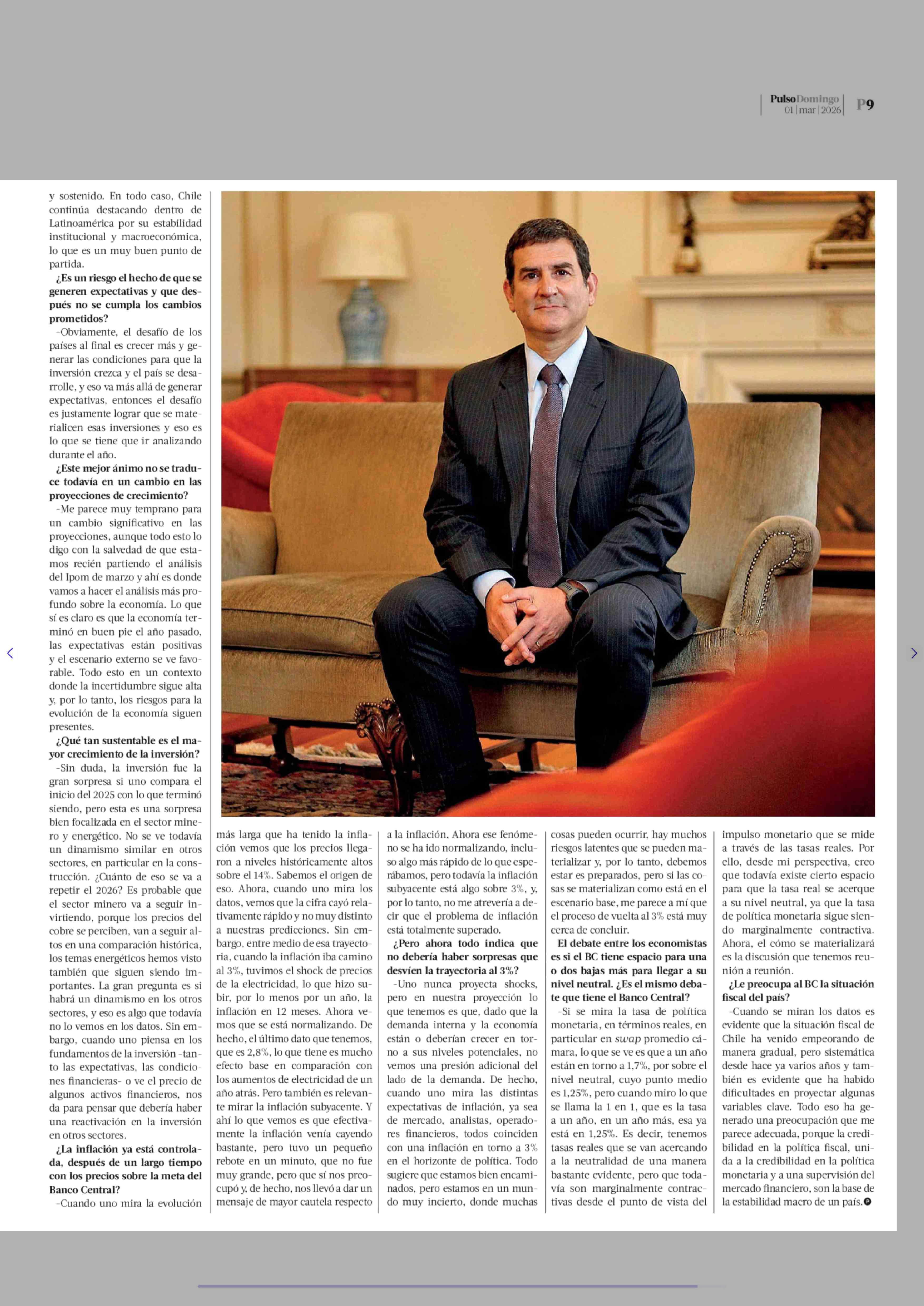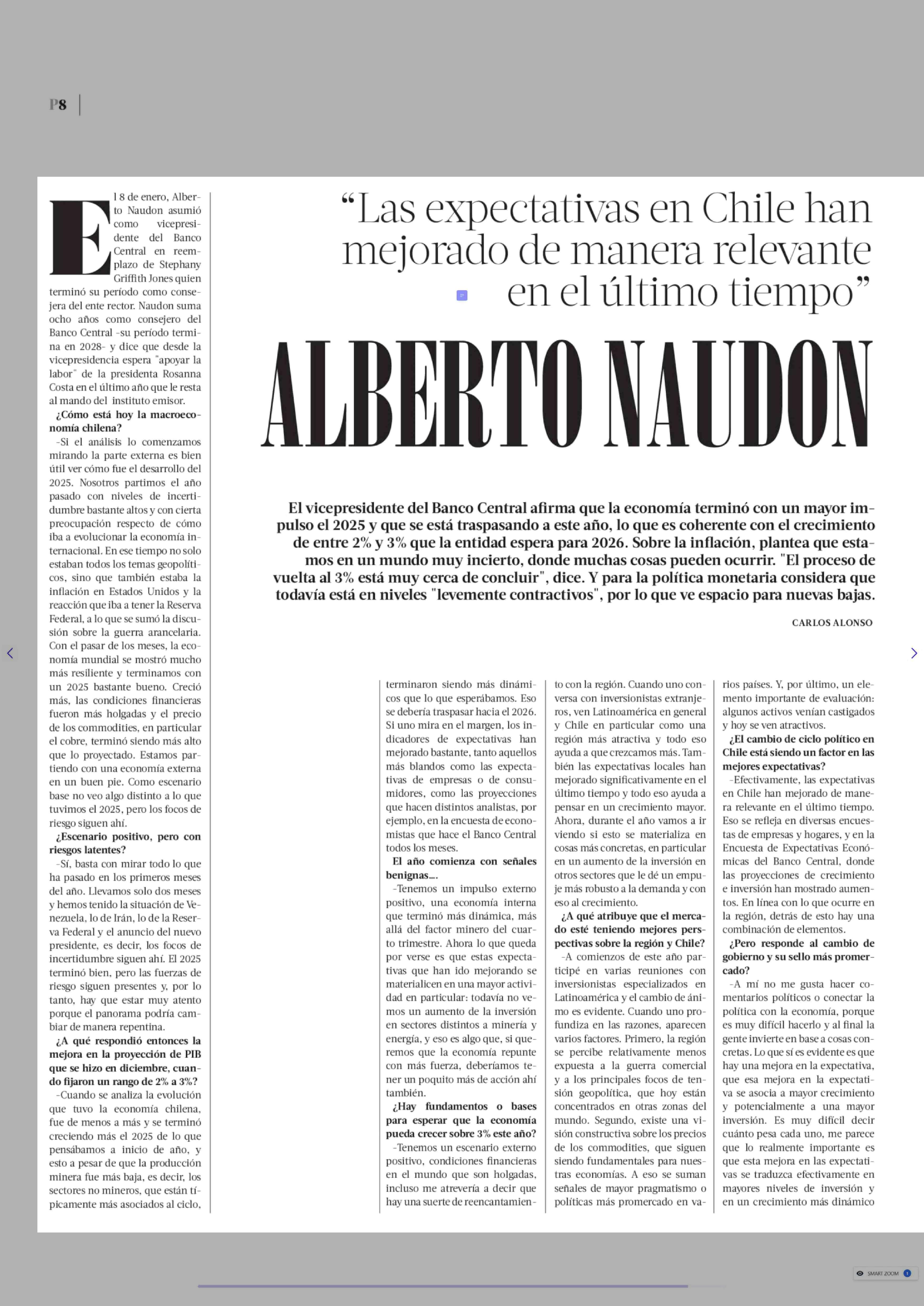 "Las expectativas en Chile han mejorado de manera relevante en el último tiempo" ALBERTO NAUDON 01-03-2026 La Tercera |