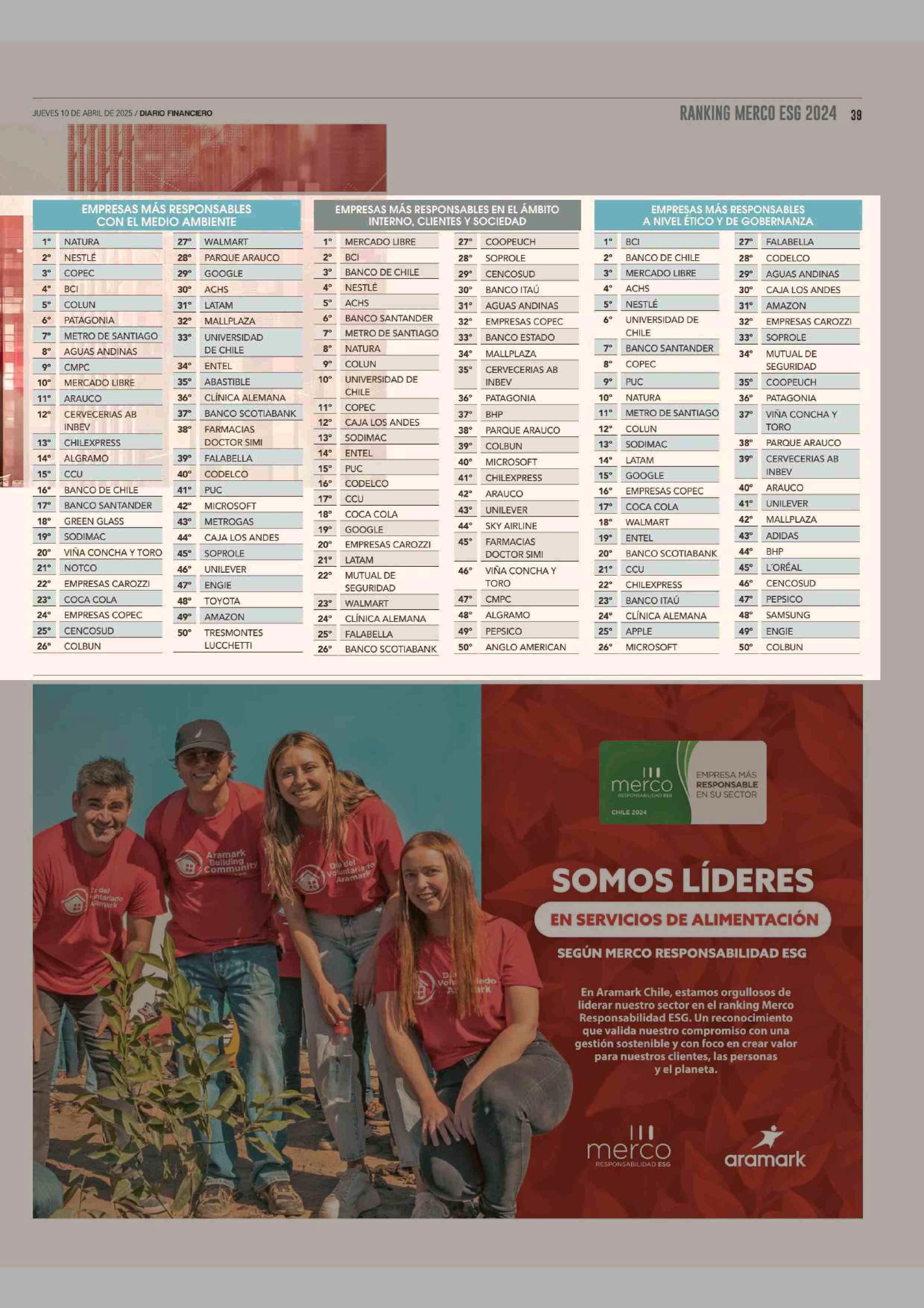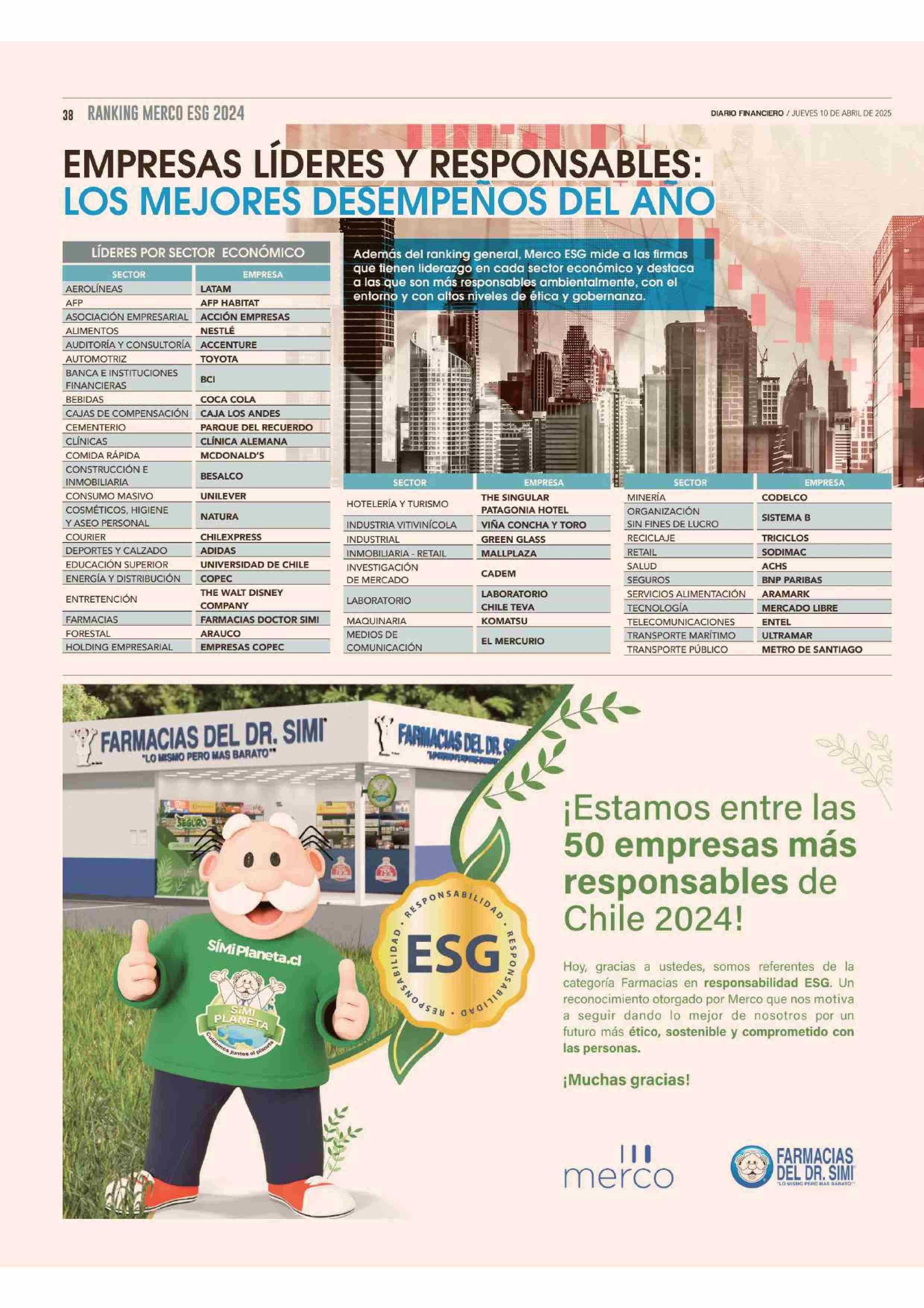 EMPRESAS LÍDERES Y RESPONSABLES: LOS MEJORES DESEMPEÑOS DEL AÑO 10-04-2025 Diario Financiero |