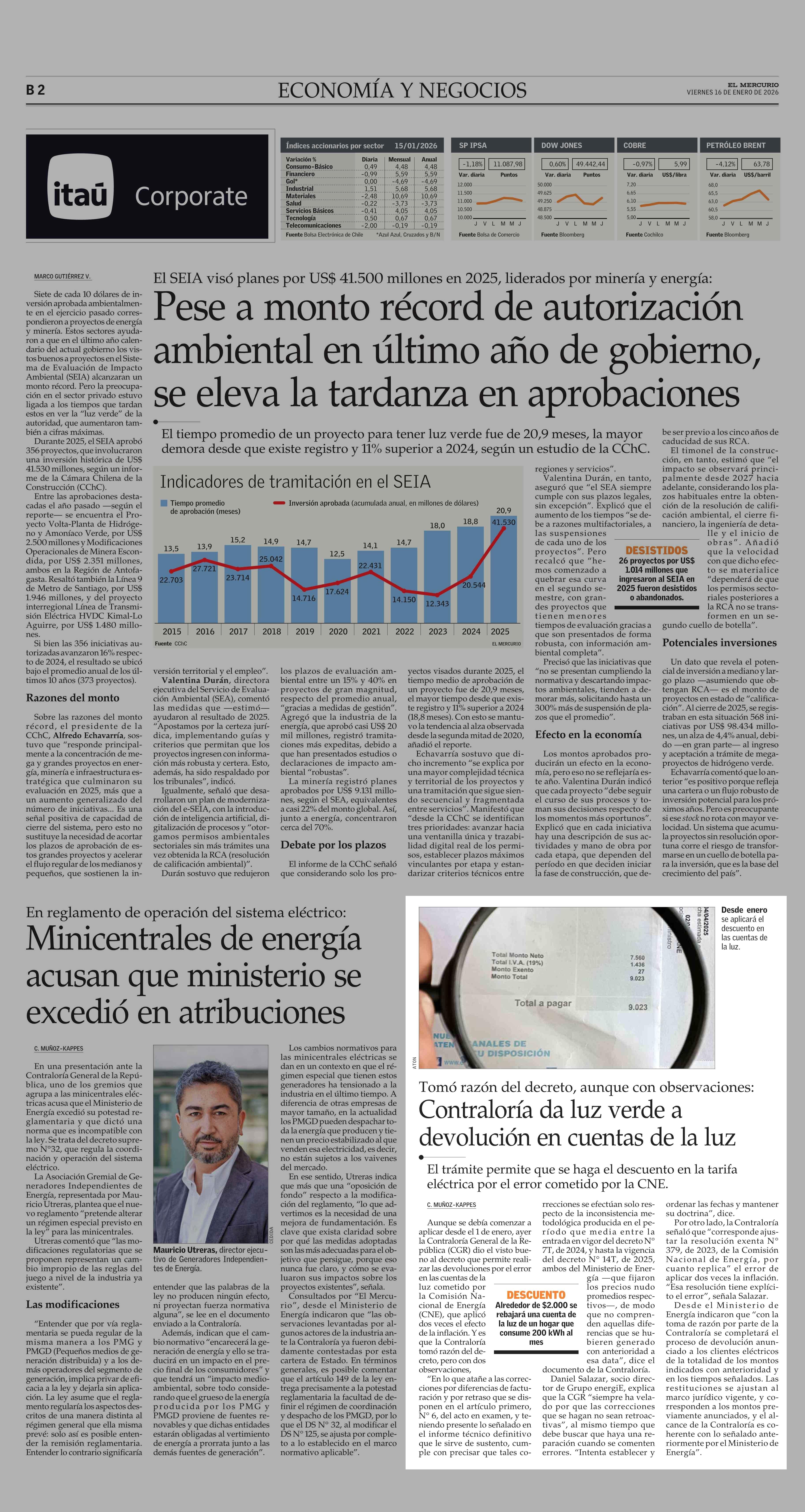 Contraloría da luz verde a devolución en cuentas de la luz 16-01-2026 El Mercurio |