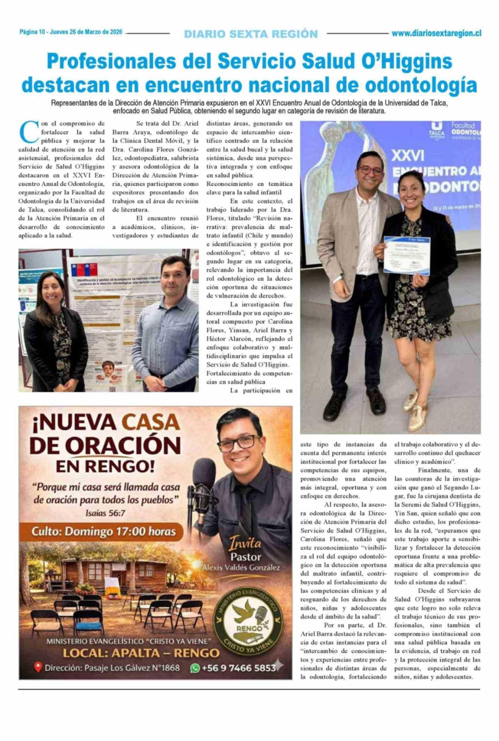 Fecha: 26-03-2026 Sector: Noticia general Región: Región del Libertador General Bernardo O'Higgins