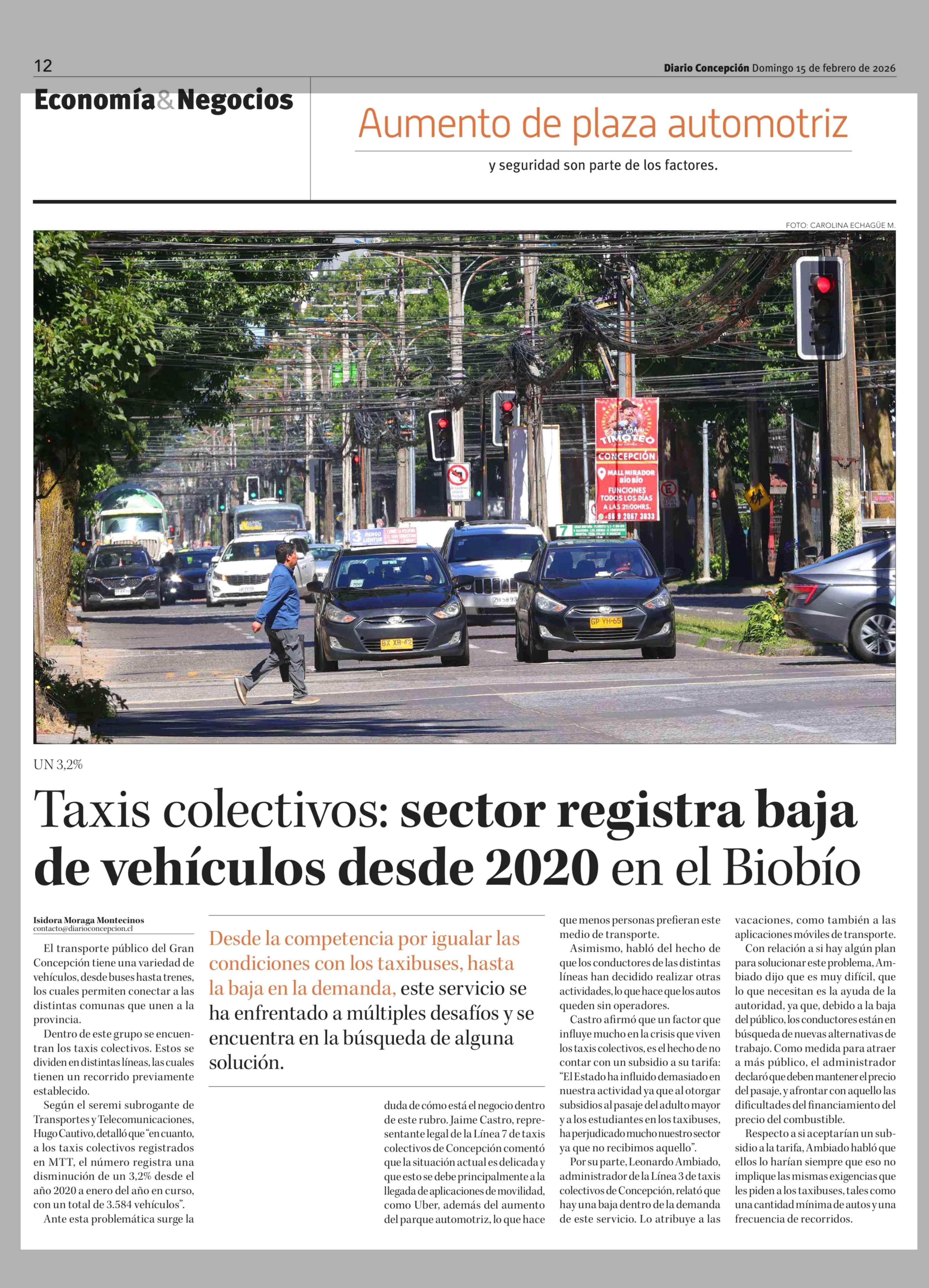 Taxis colectivos: sector registra baja de vehículos desde 2020 en el Biobío 15-02-2026 Diario Concepción |