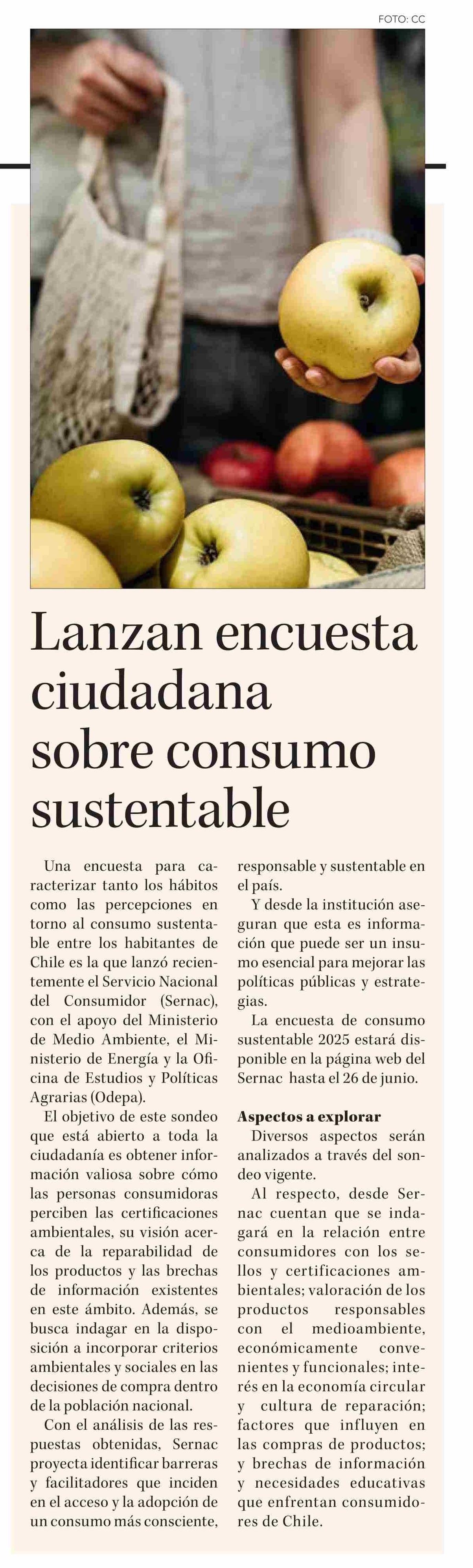 Lanzan encuesta ciudadana sobre consumo sustentable 12-06-2025 Diario Concepción |