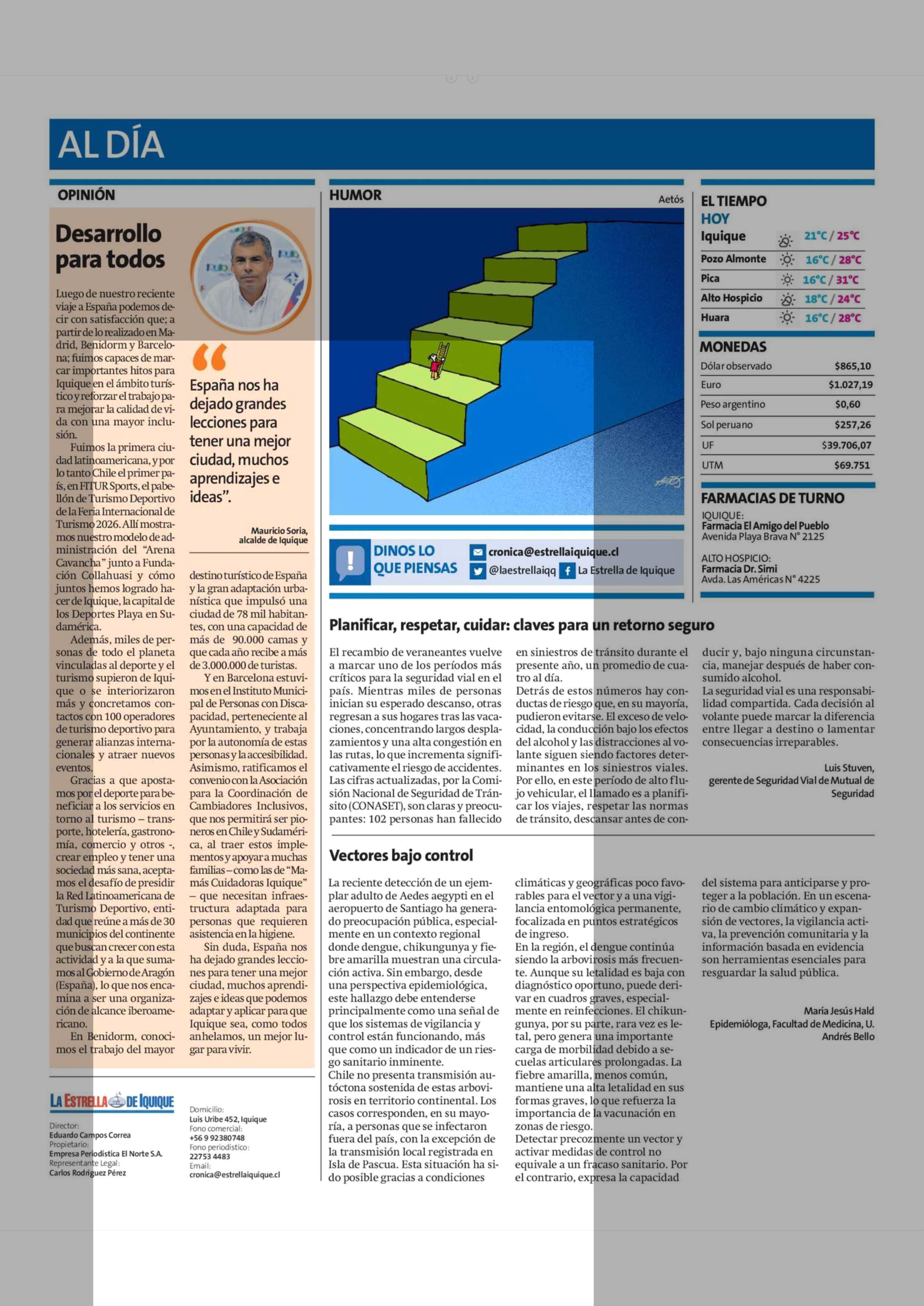 Columnas de Opinión: Desarrollo para todos 31-01-2026 La Estrella de Iquique |