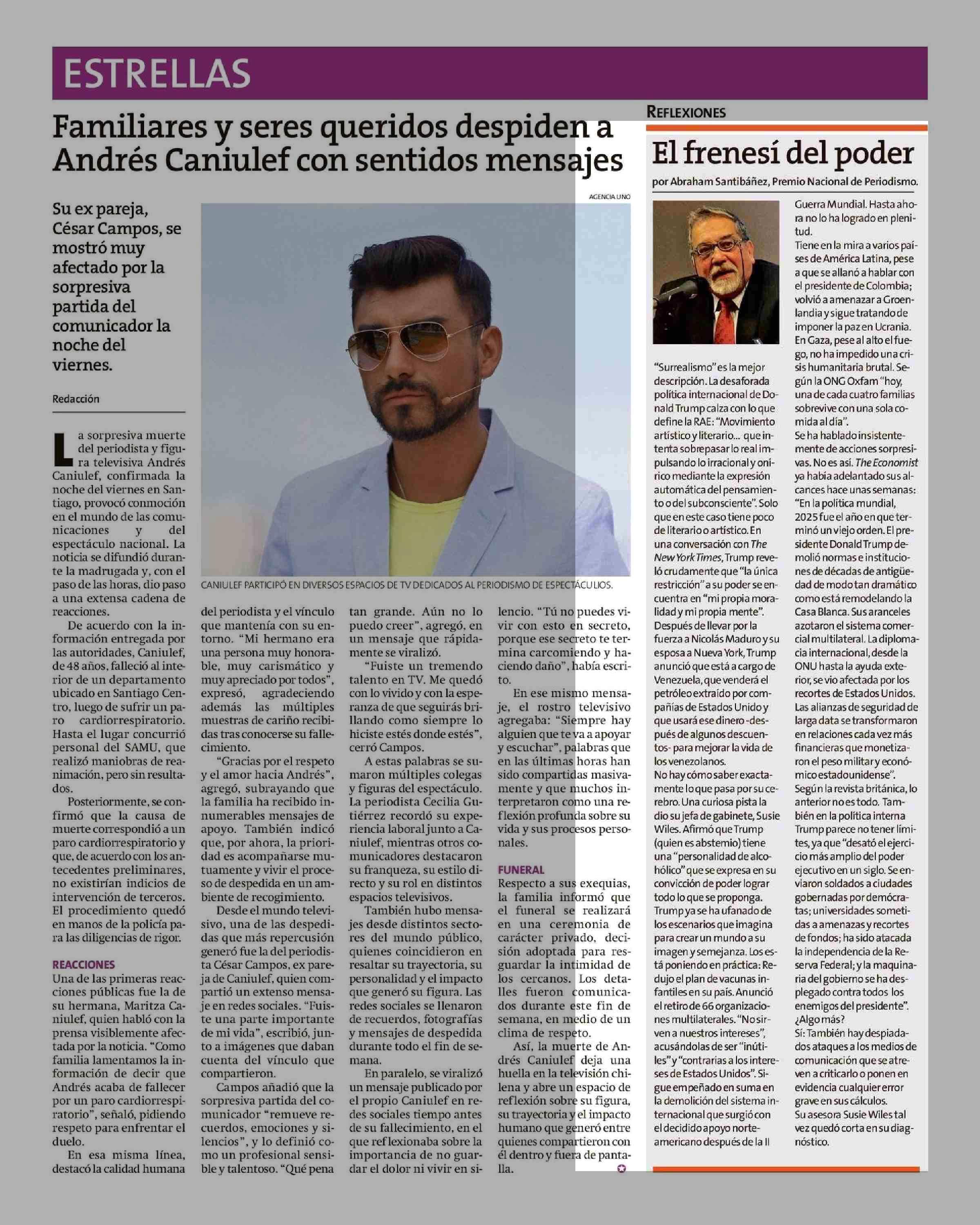 Columnas de Opinión: El frenesí del poder 11-01-2026 El Líder |