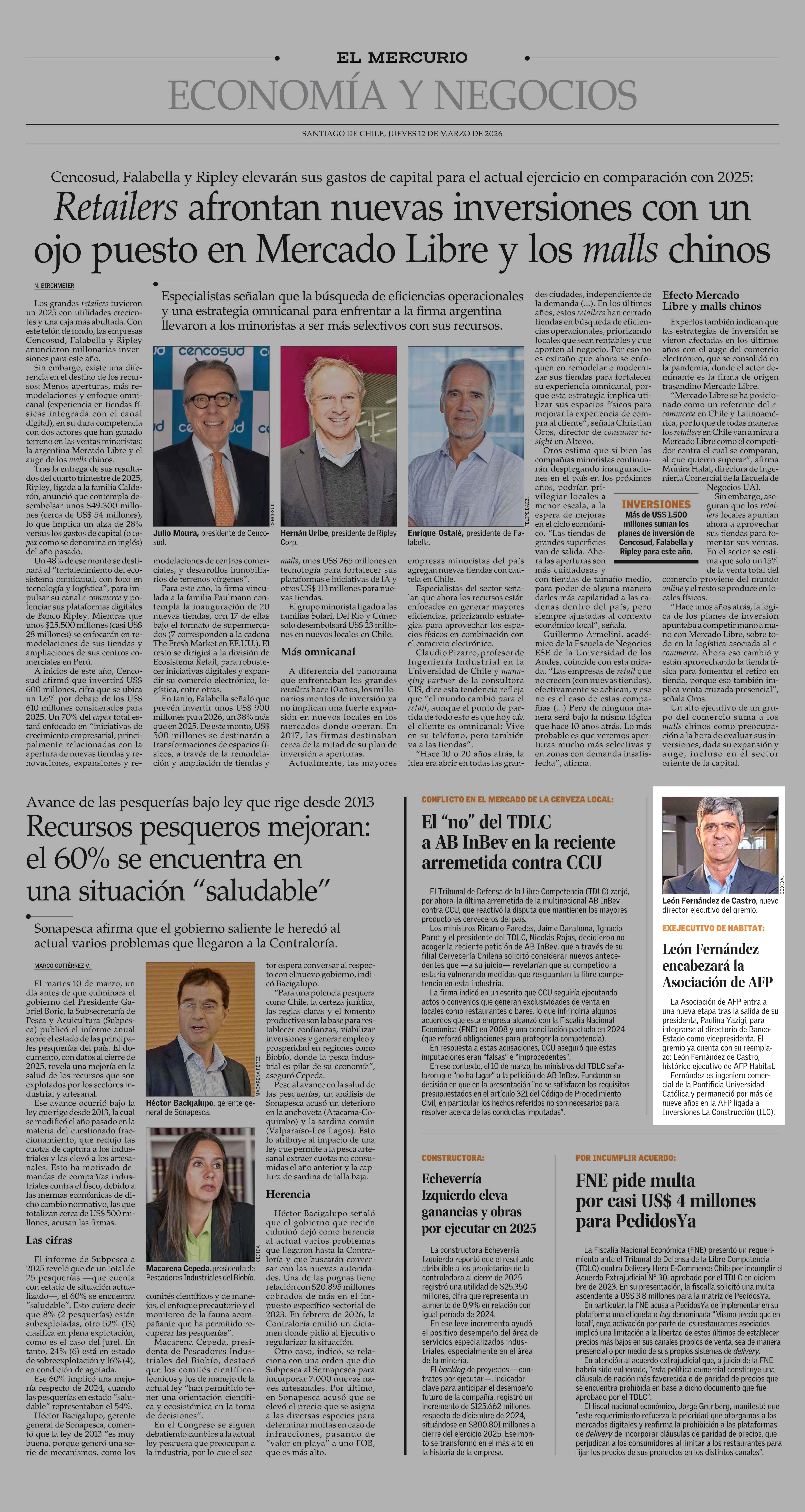 León Fernández encabezará la Asociación de AFP 12-03-2026 El Mercurio |