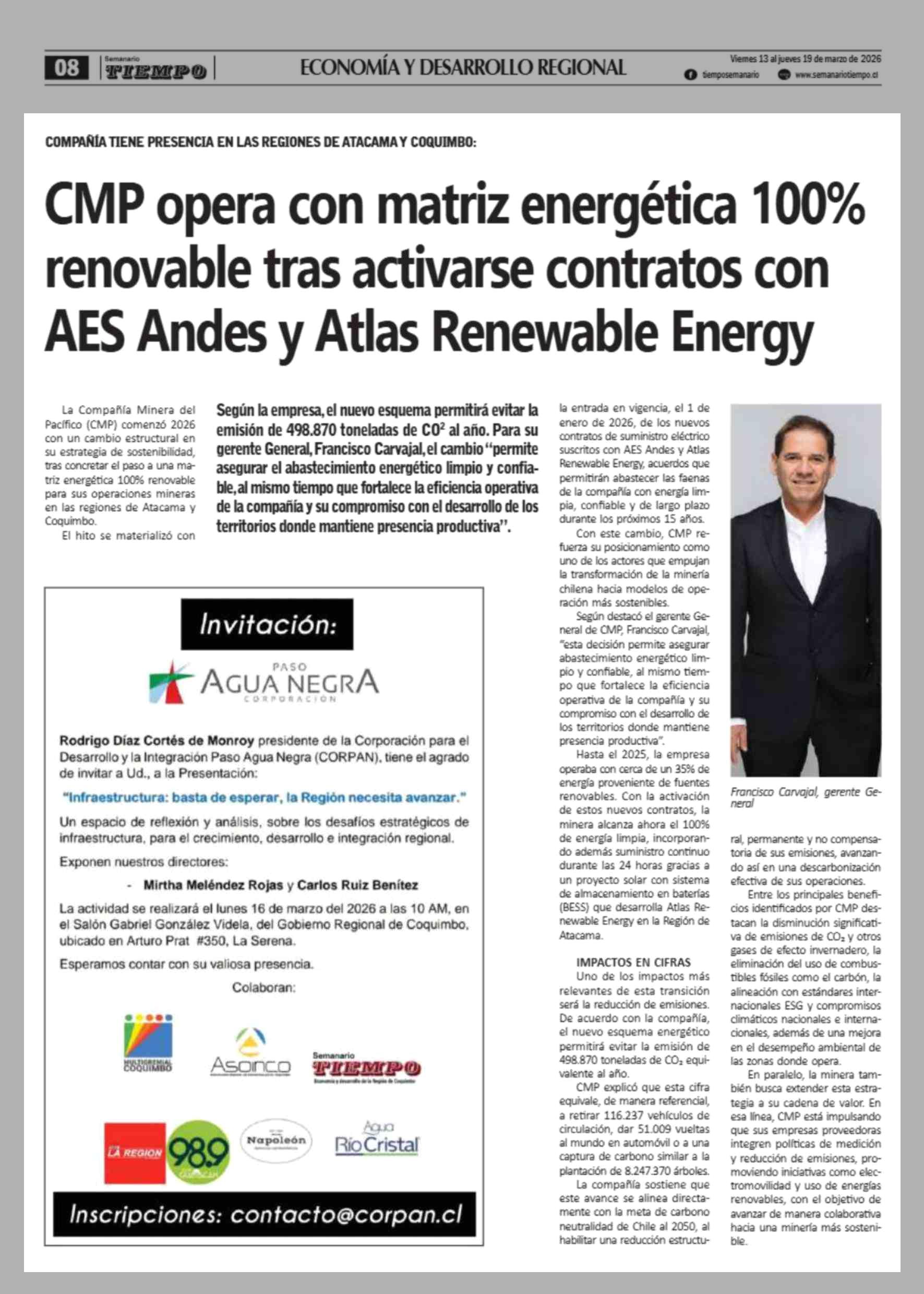 Título: CMP opera con matriz energética 100% renovable tras activarse contratos con AES Andes y Atlas Renewable Energy