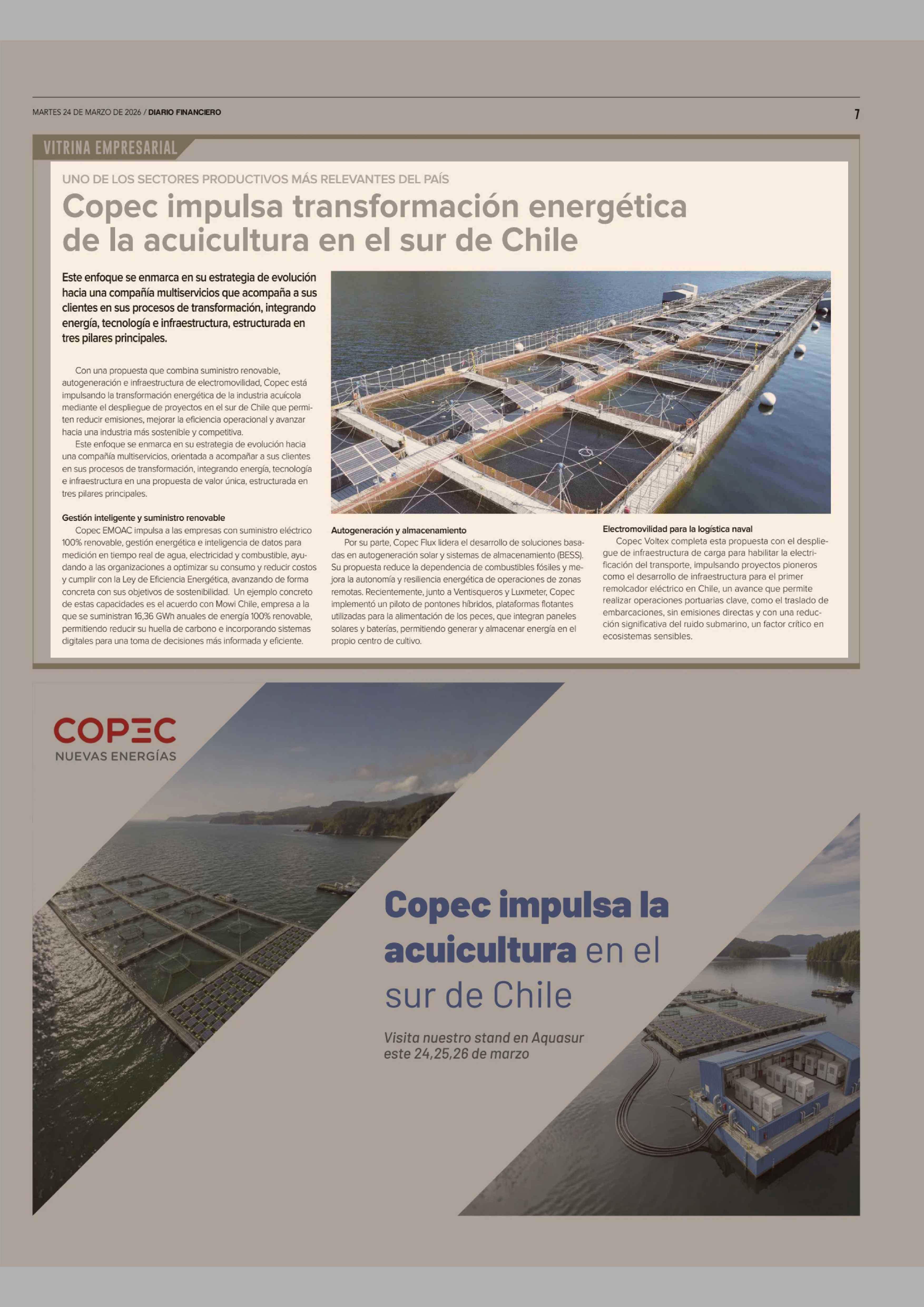 Copec impulsa transformación energética de la acuicultura en el sur de Chile 24-03-2026 Diario Financiero |