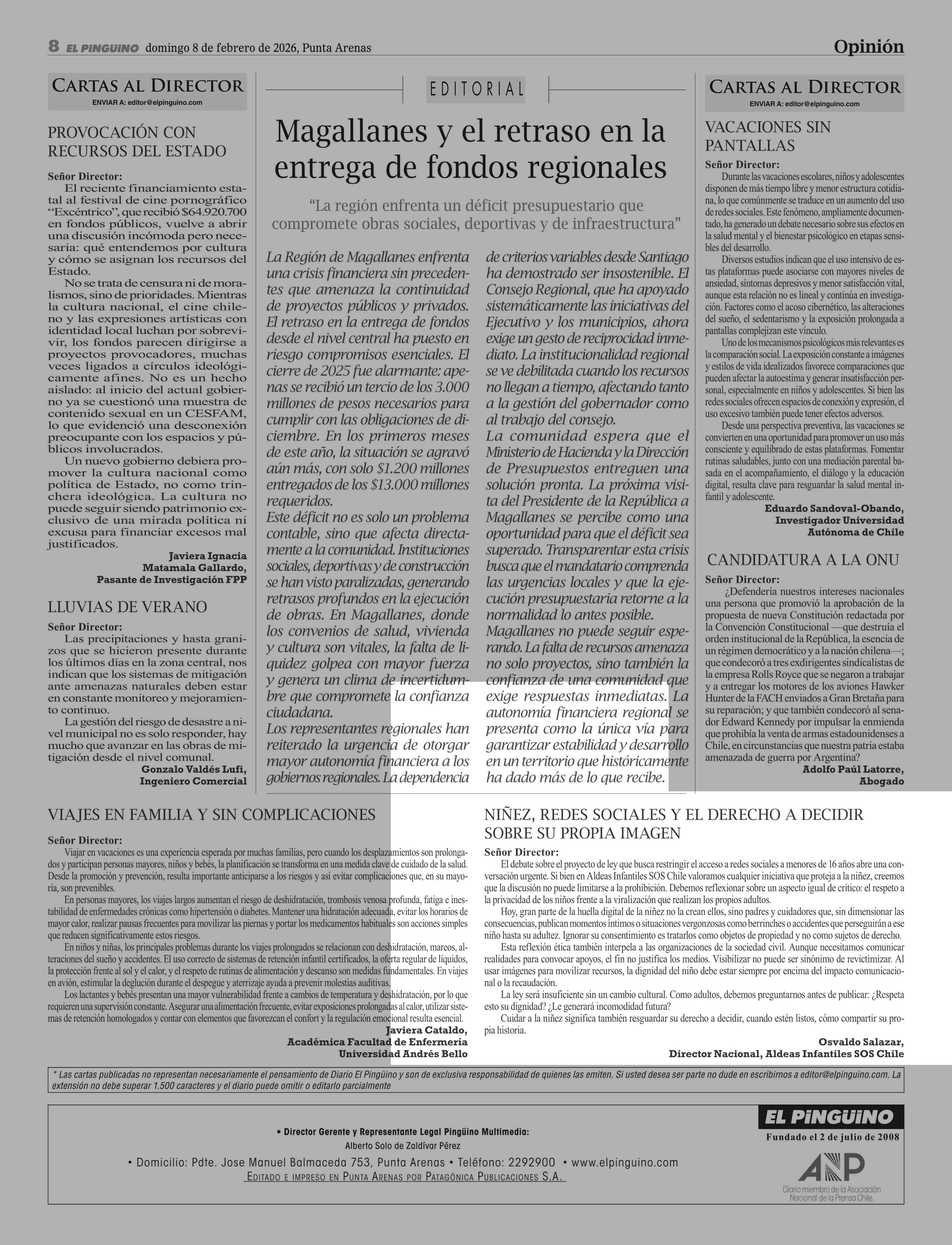 CARTAS: NIÑEZ, REDES SOCIALES Y EL DERECHO A DECIDIR SOBRE SU PROPIA IMAGEN 08-02-2026 El Pingüino |