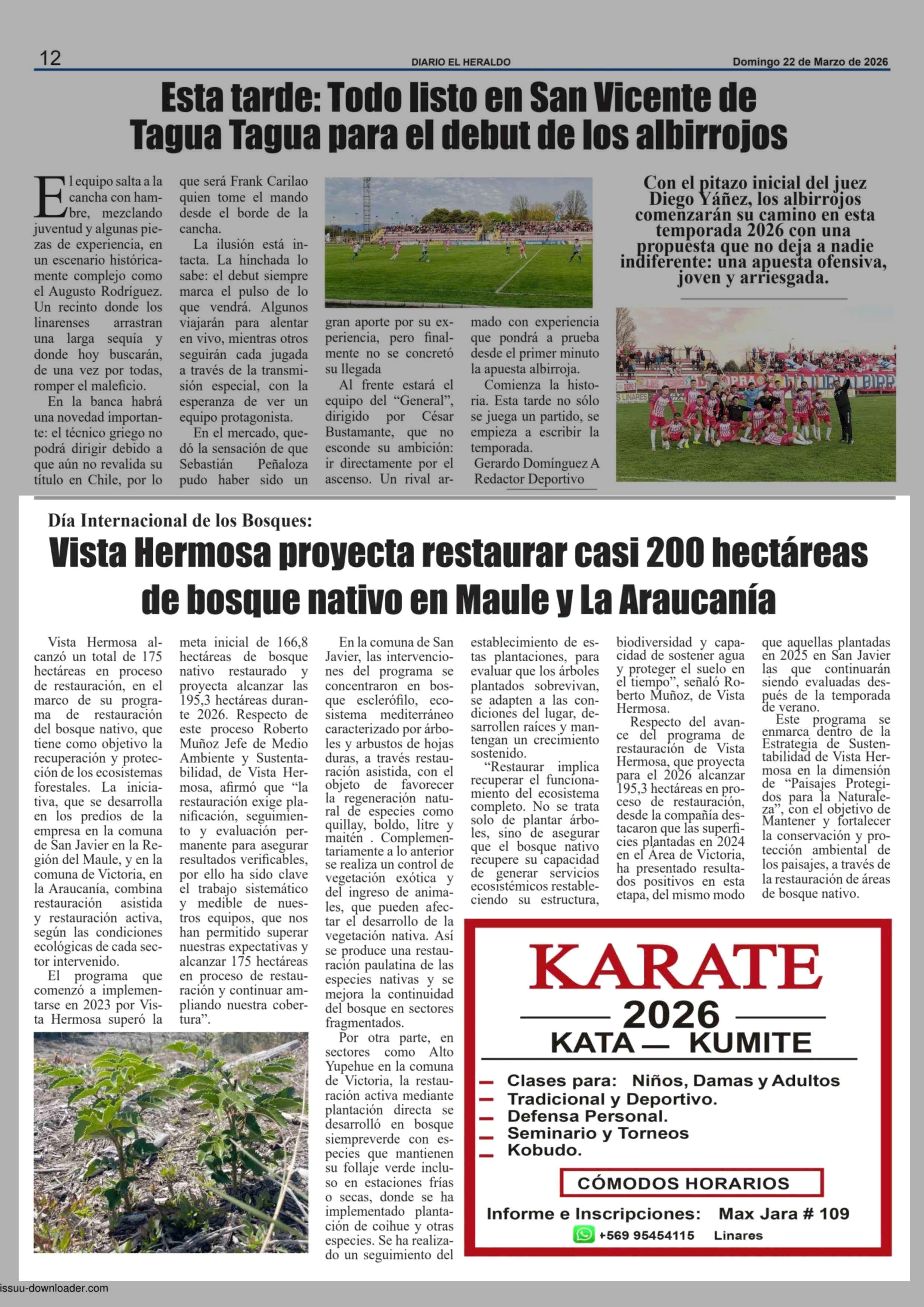 Vista Hermosa proyecta restaurar casi 200 hectáreas de bosque nativo en Maule y La Araucanía 22-03-2026 El Heraldo |