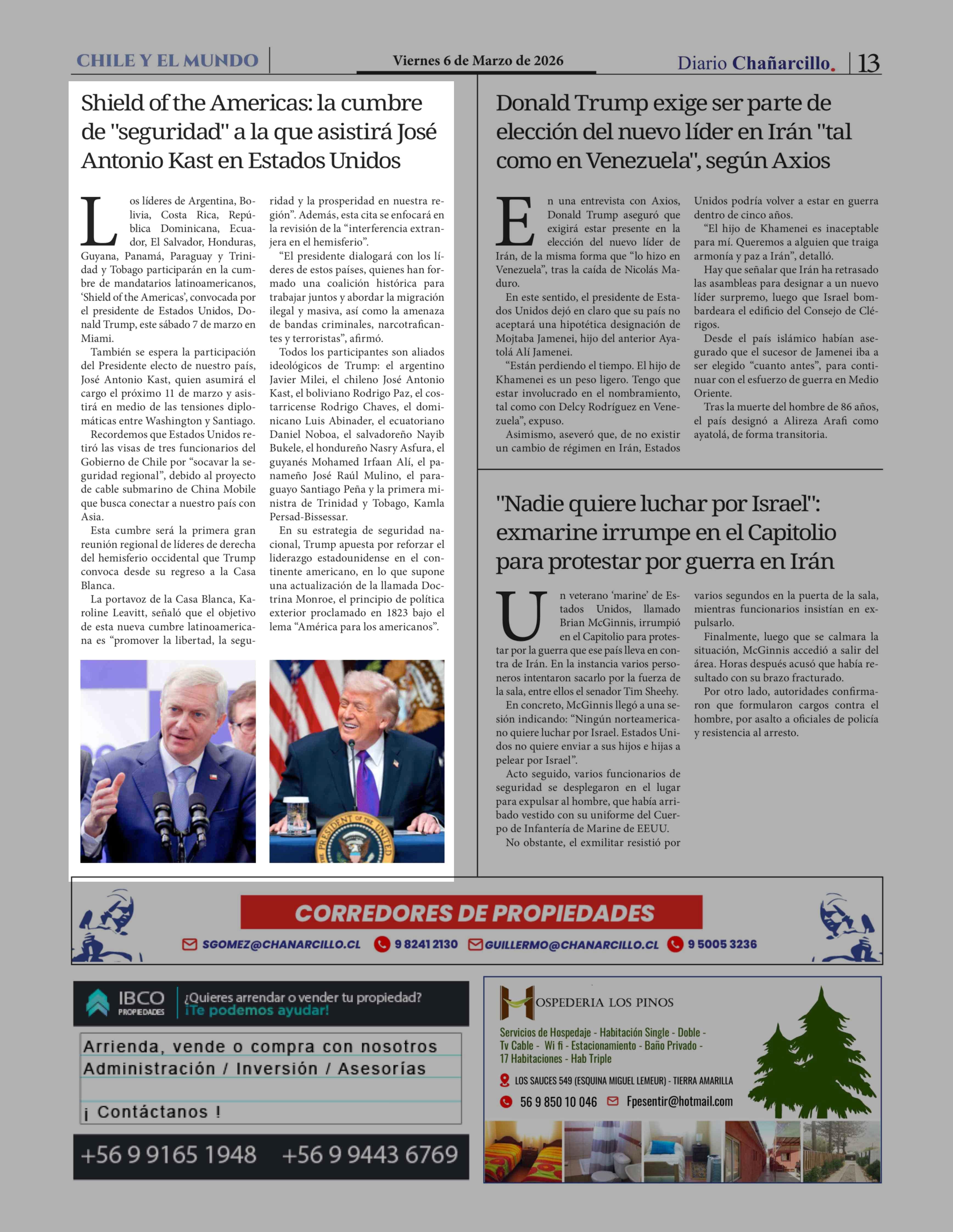 Shield of the Americas: la cumbre de "seguridad" a la que asistirá José Antonio Kast en Estados Unidos 06-03-2026 Diario Chañarcillo |