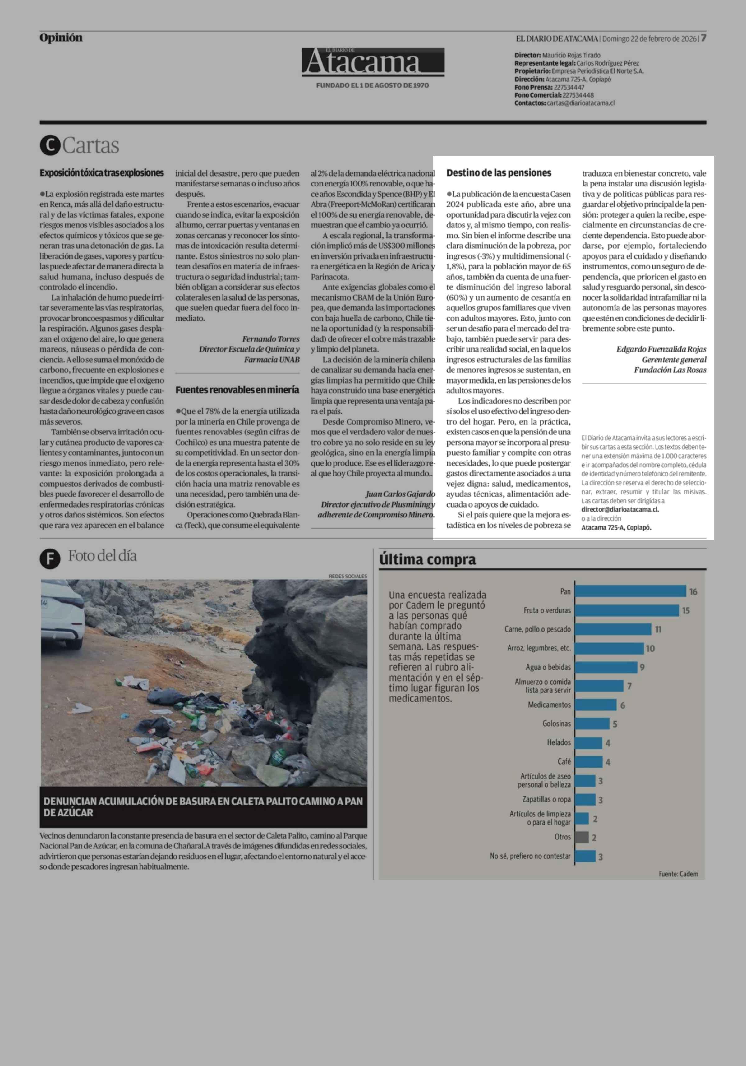 Cartas: Destino de las pensiones 22-02-2026 El Diario de Atacama |