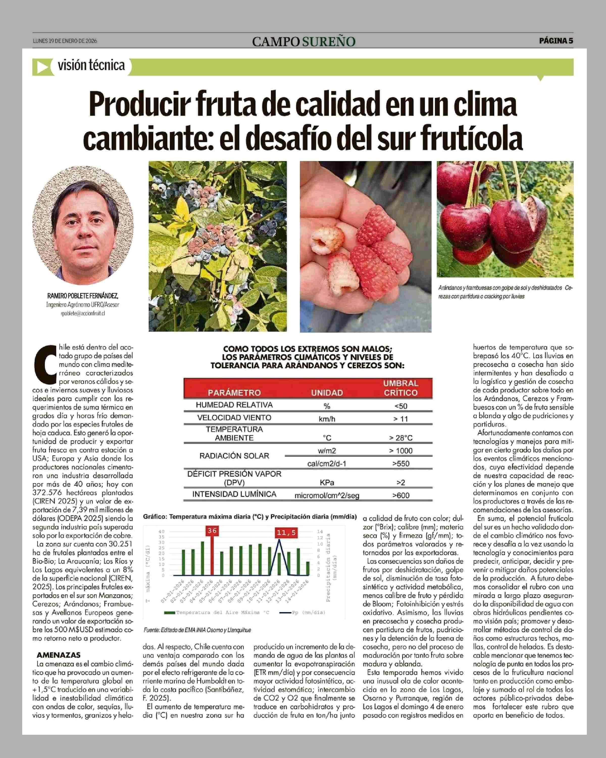 Producir fruta de calidad en un clima cambiante: el desafío del sur frutícola 19-01-2026 Campo Sureño - Regiones IX, X y XIV |