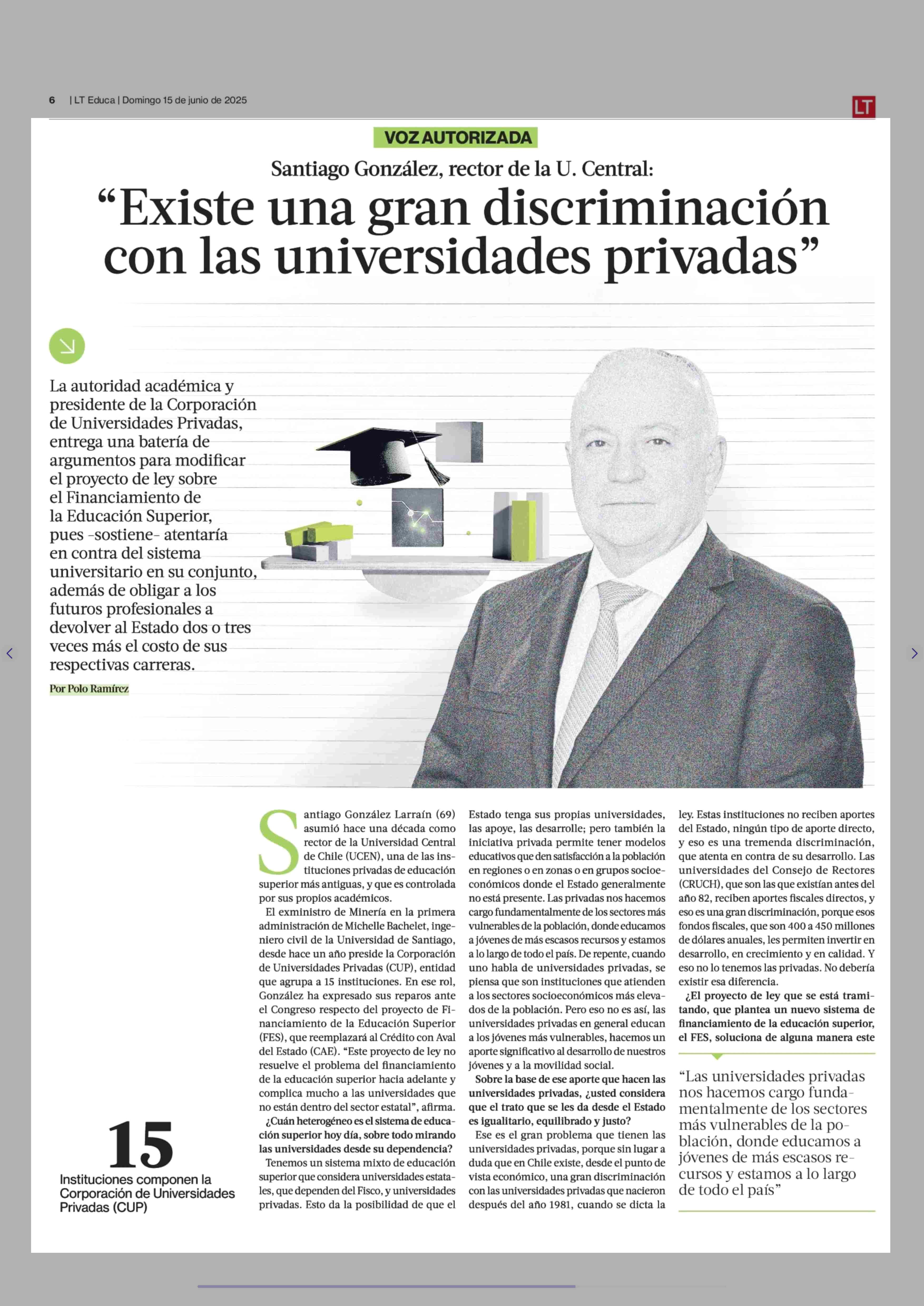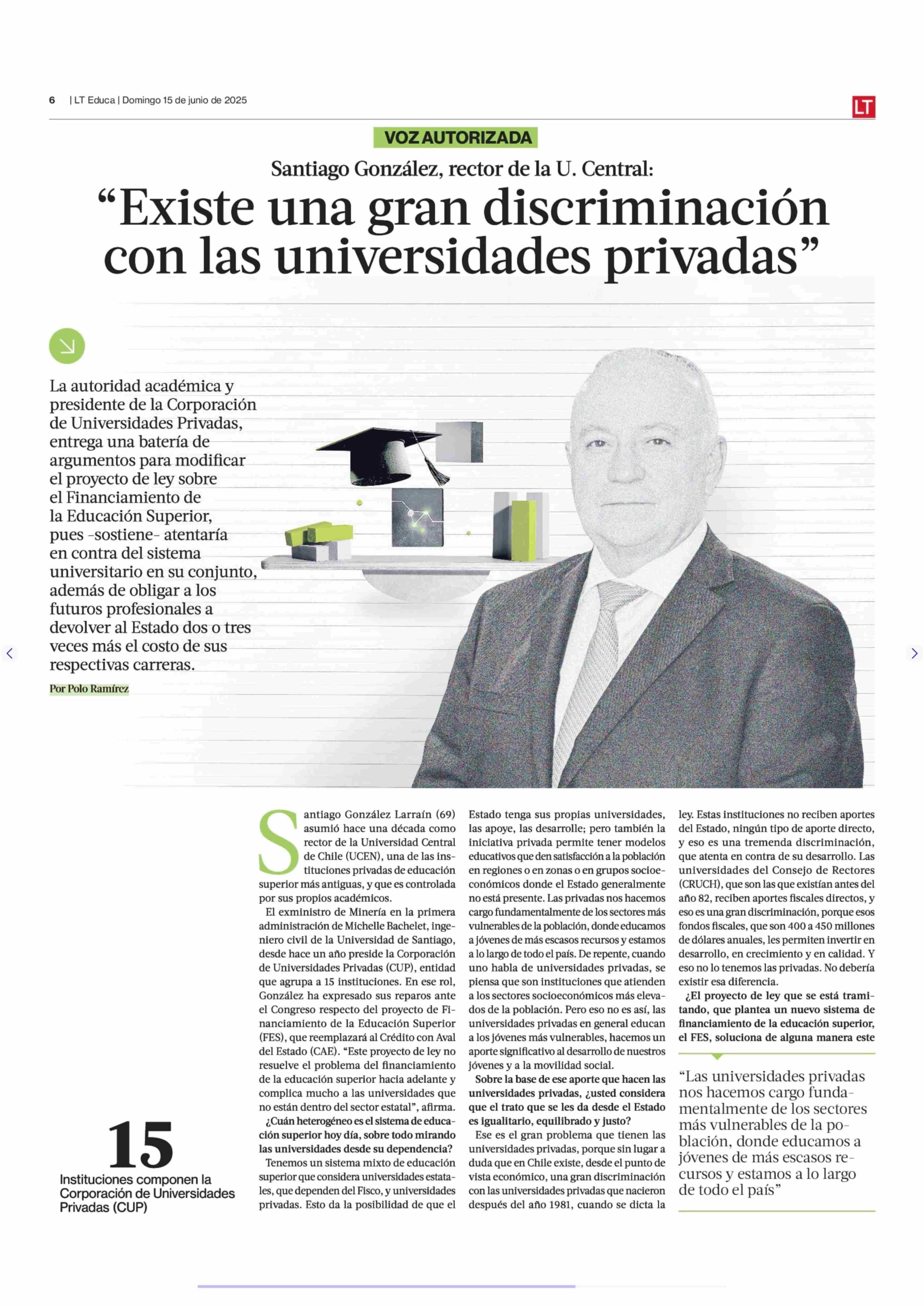 “Existe una gran discriminación con las universidades privadas” 15-06-2025 La Tercera |