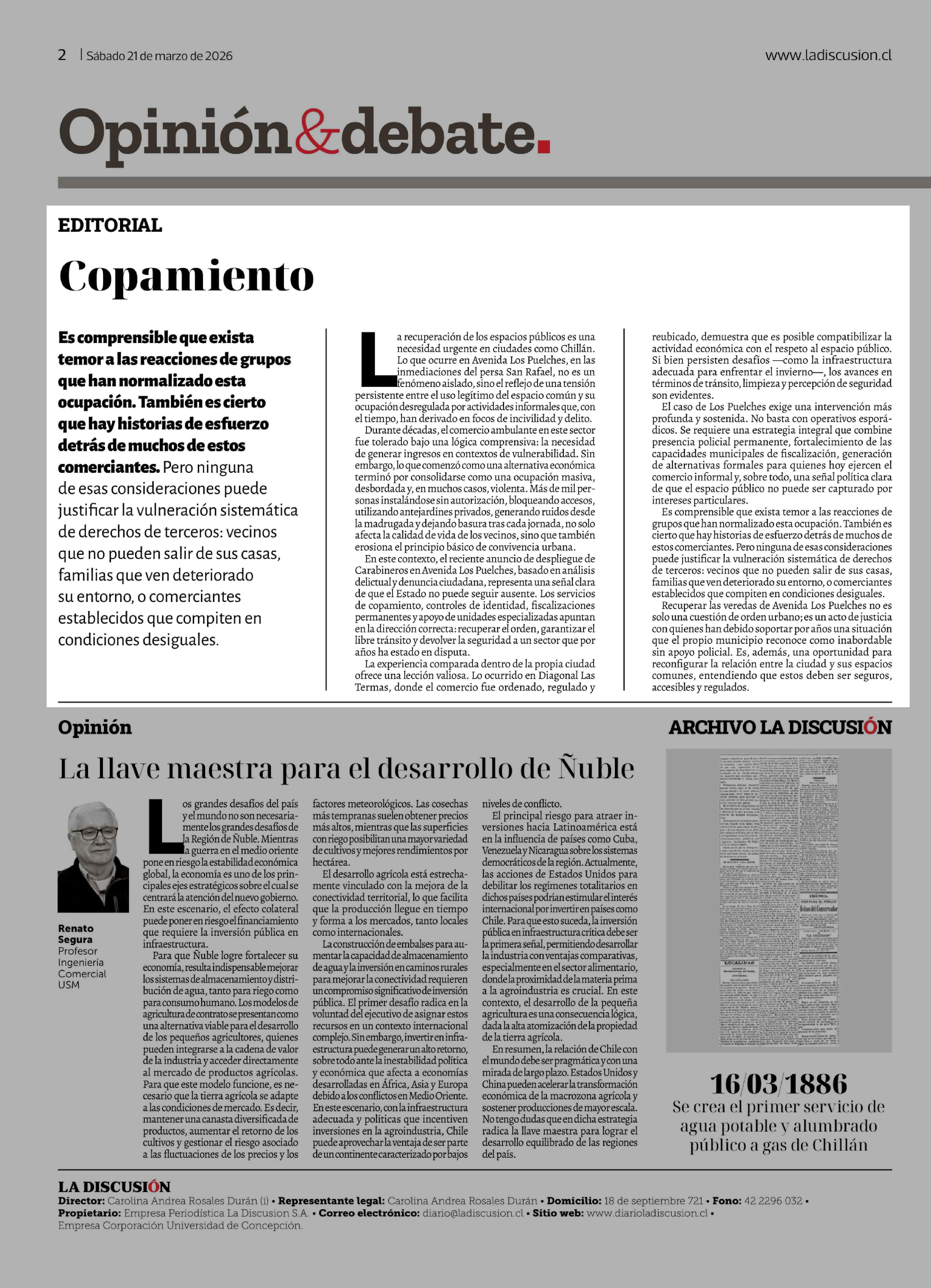 Editorial: Copamiento 21-03-2026 La Discusión |