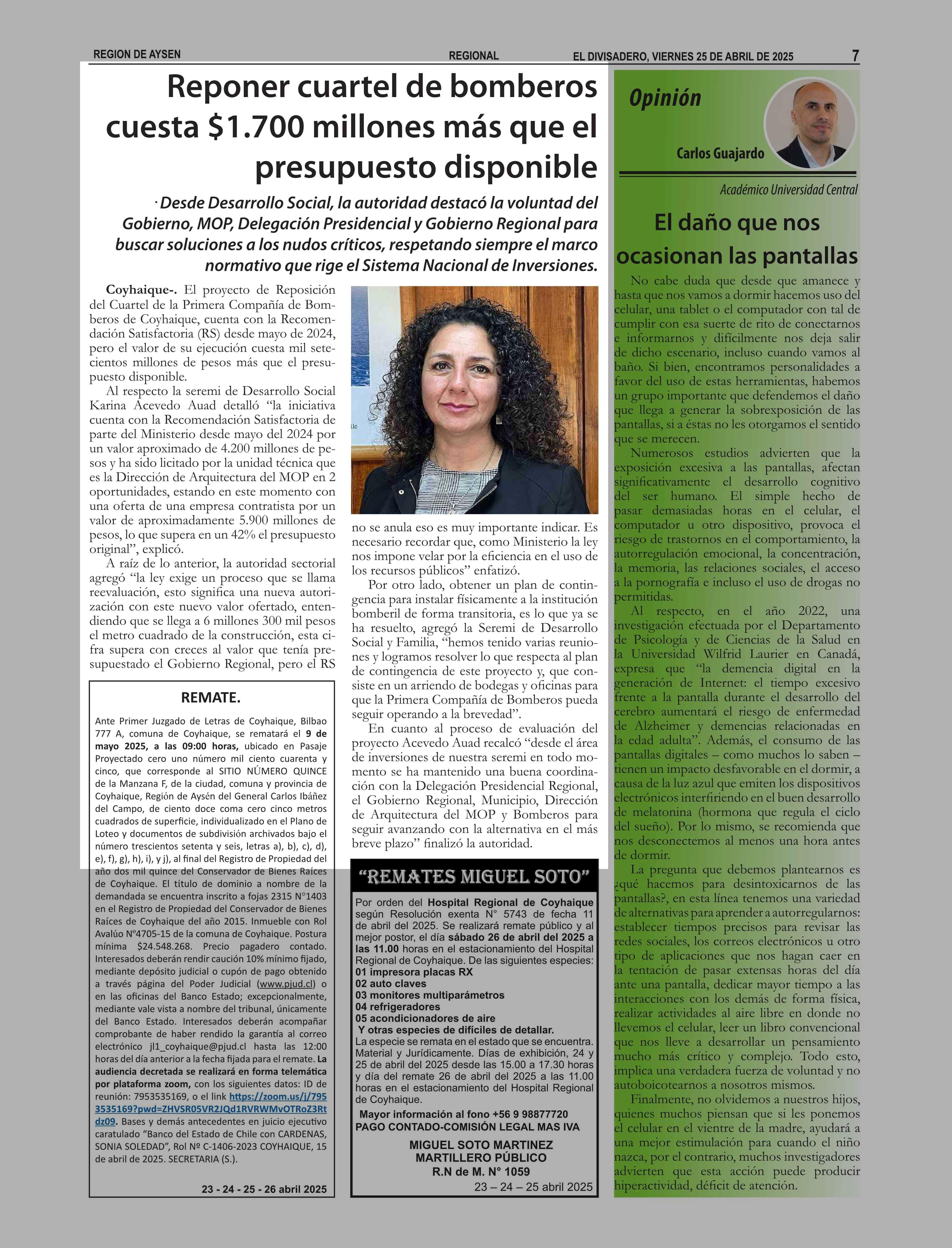 | Fecha: | 25-04-2025 | Sector: | Noticia general | Región: | Región Aysén del General Carlos Ibáñez del Campo |