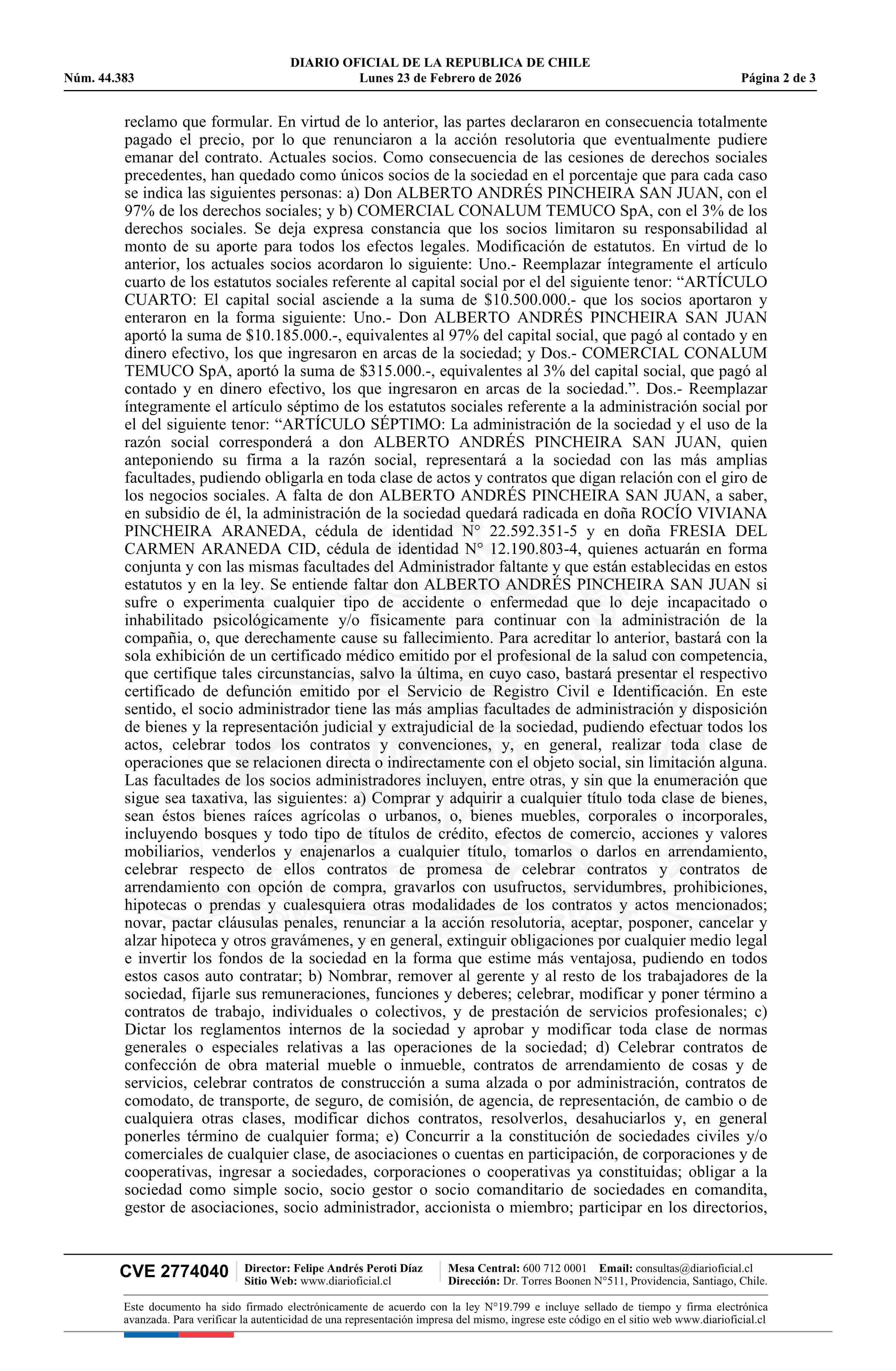 Título: COMERCIALIZADORA CONALUM TEMUCO LIMITADA 77.635.160-1*