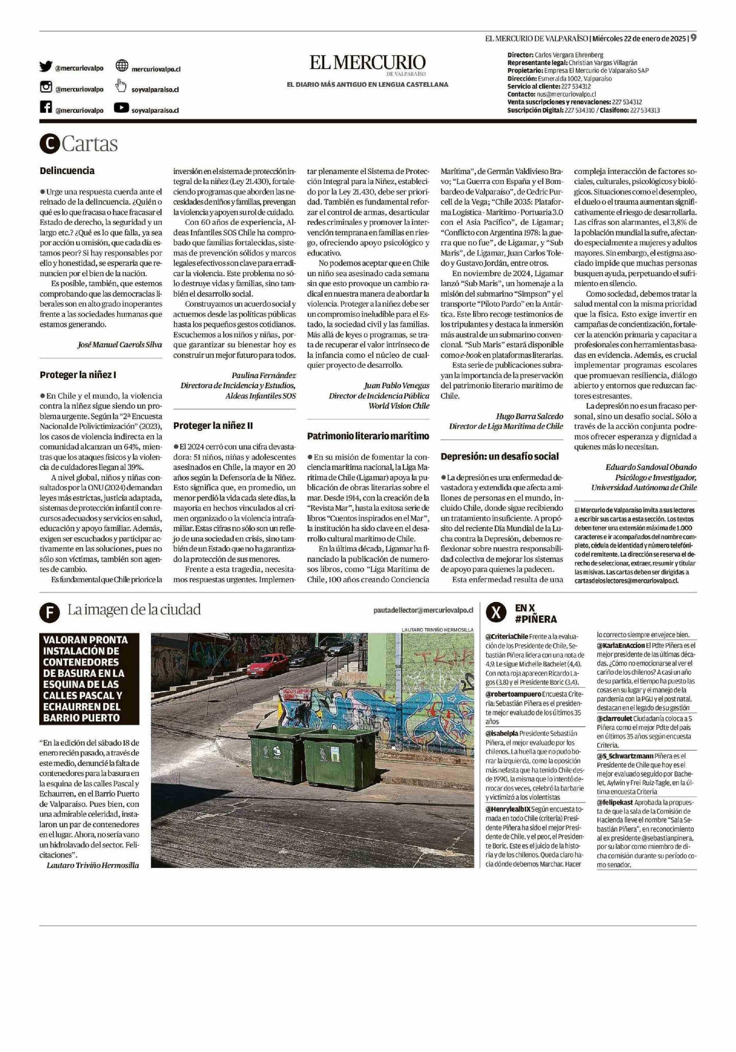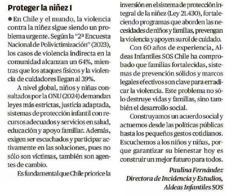 Proteger la niñez I 22-01-2025 El Mercurio de Valparaíso |