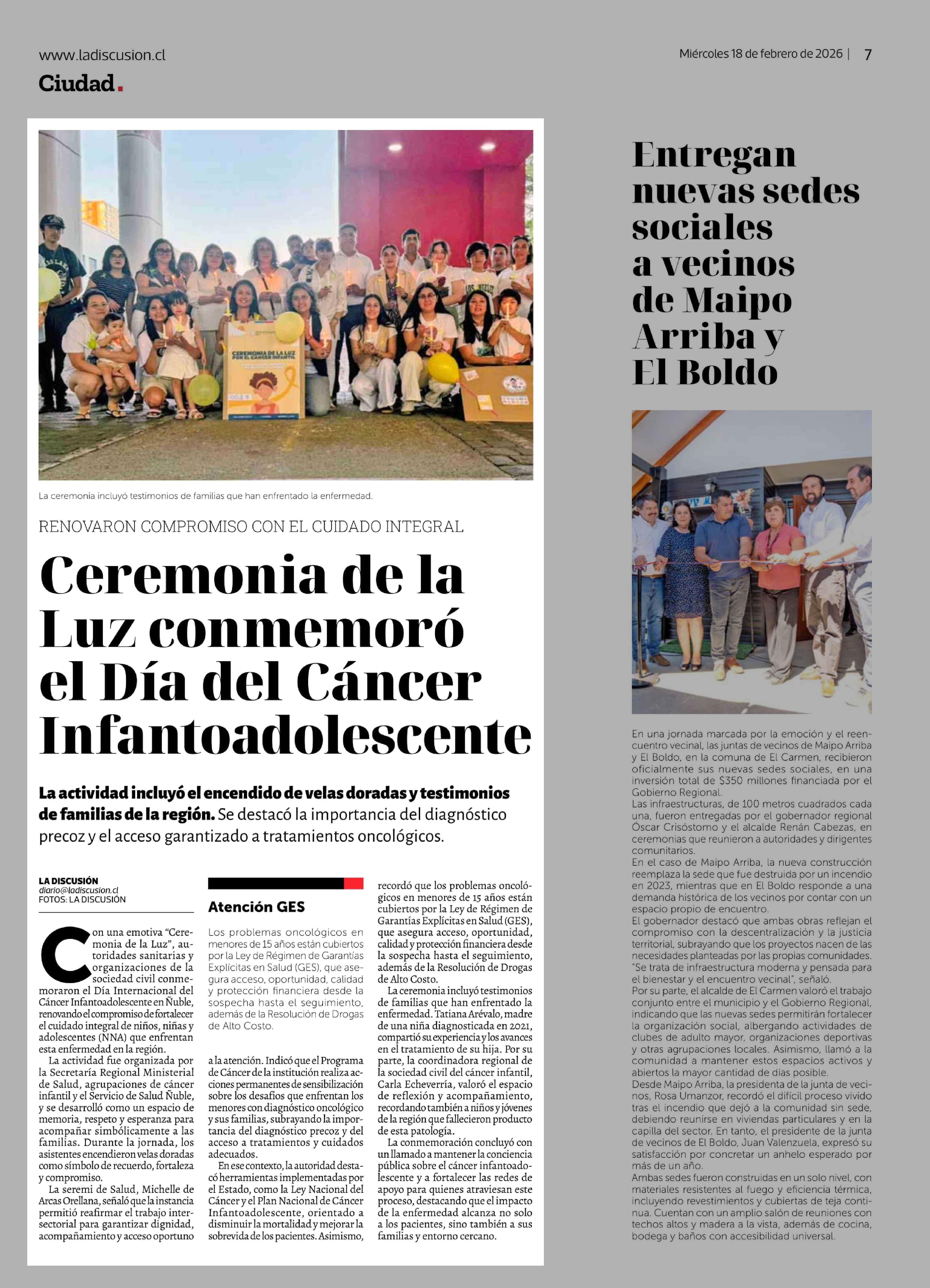 | Fecha: | 18-02-2026 | Sector: | Noticia general | Región: | Región del Ñuble |