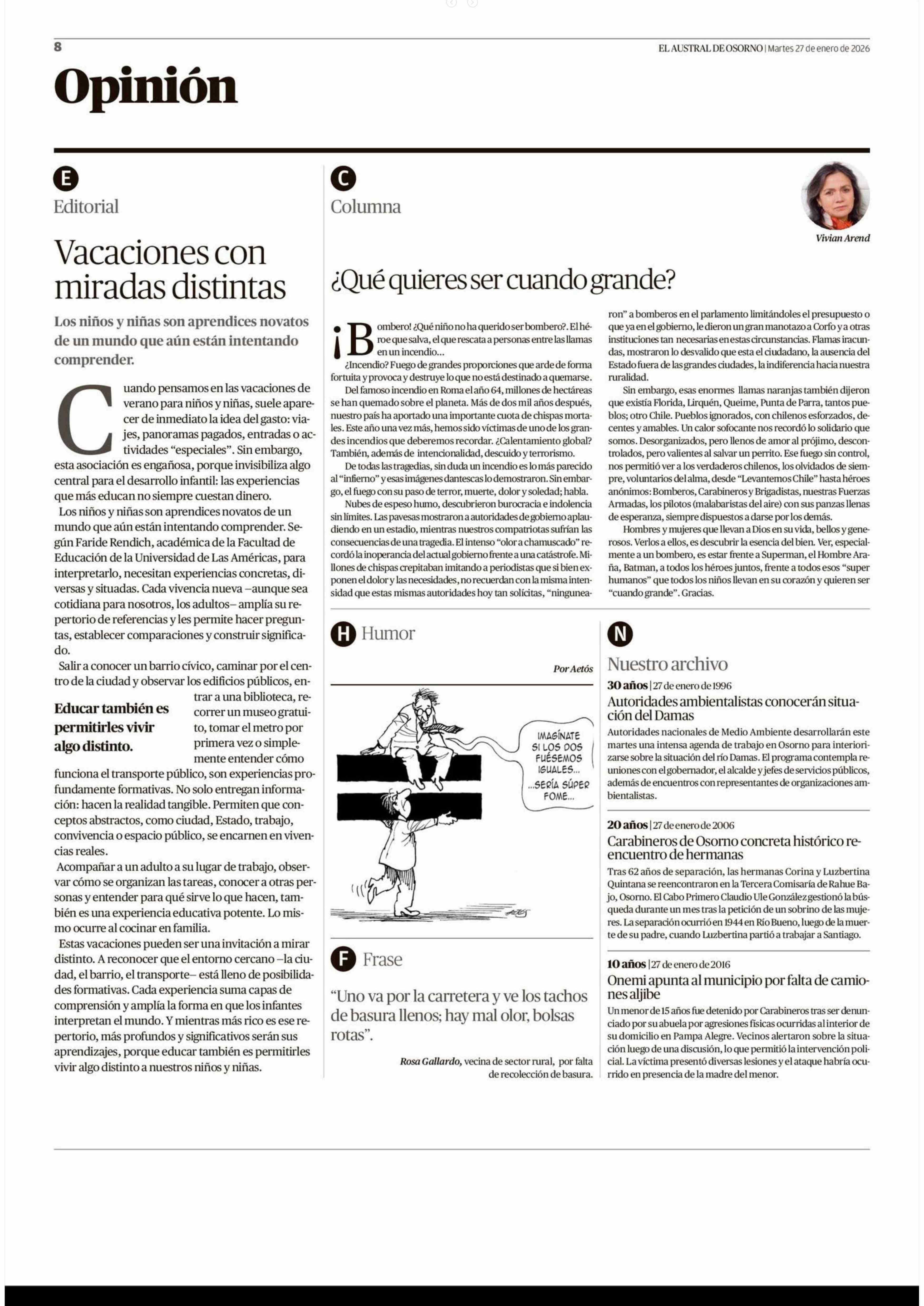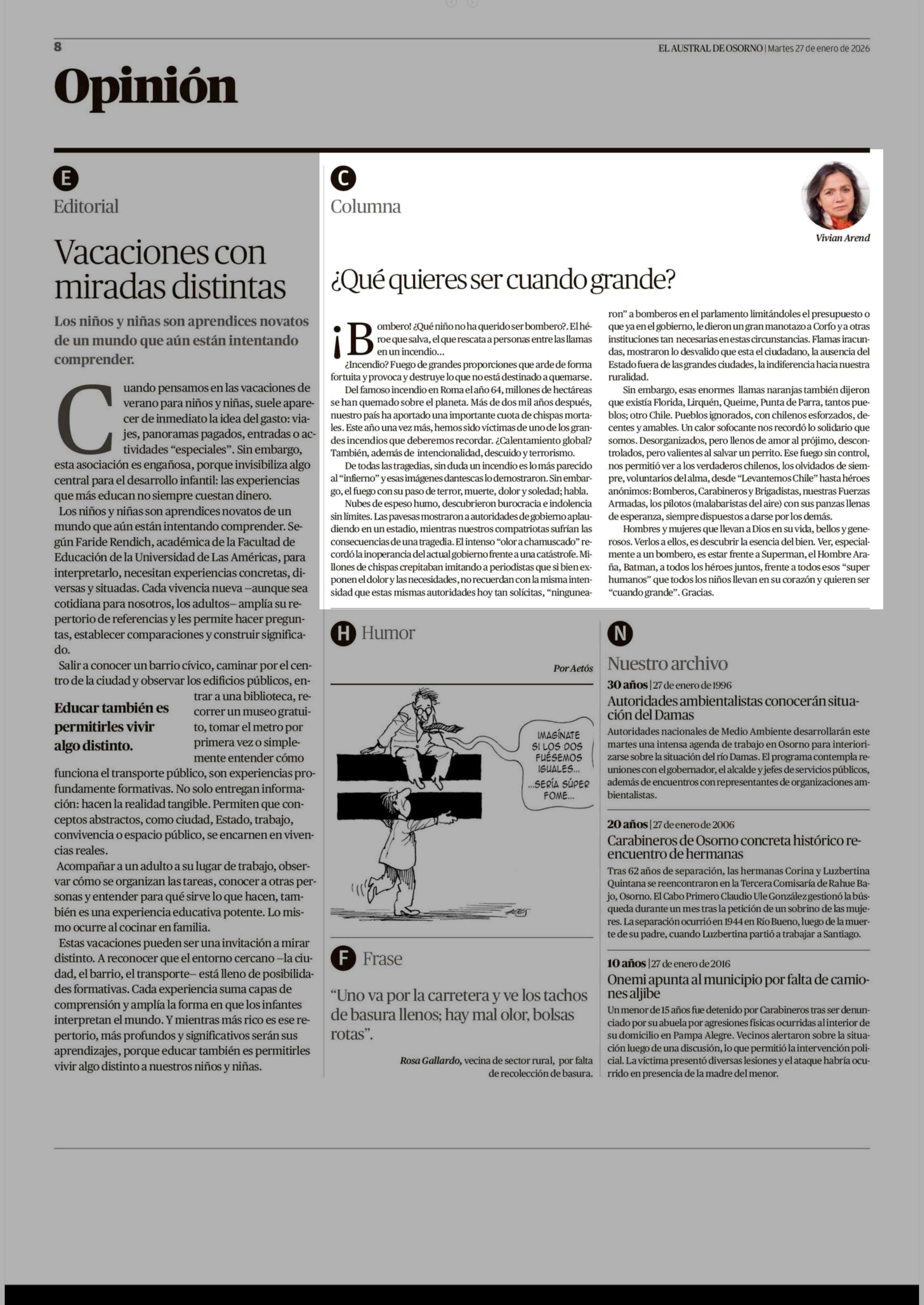 Columnas de Opinión: ¿Qué quieres ser cuando grande? 27-01-2026 El Austral de Osorno |