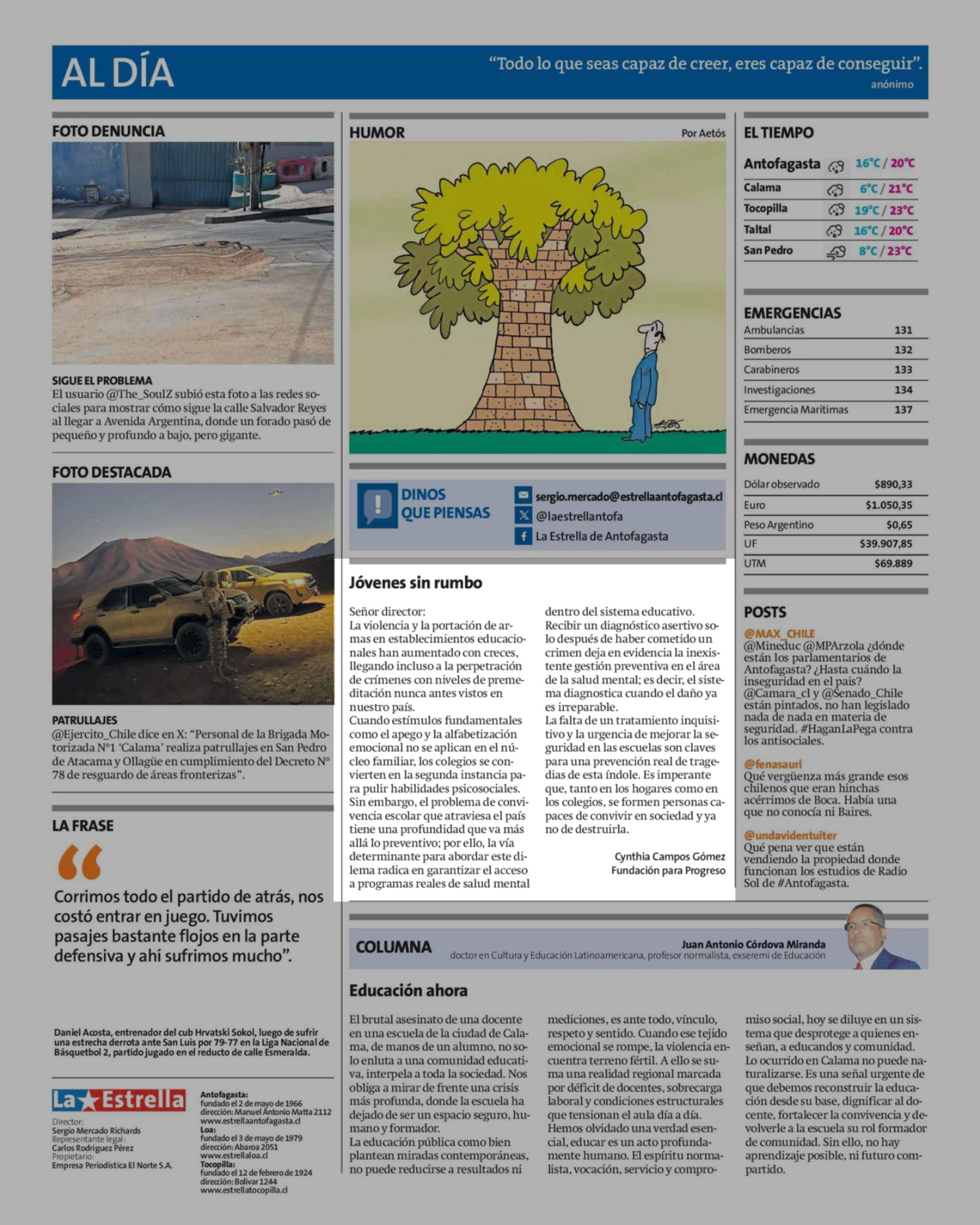 Columnas de Opinión: Jóvenes sin rumbo 14-04-2026 La Estrella de Antofagasta |