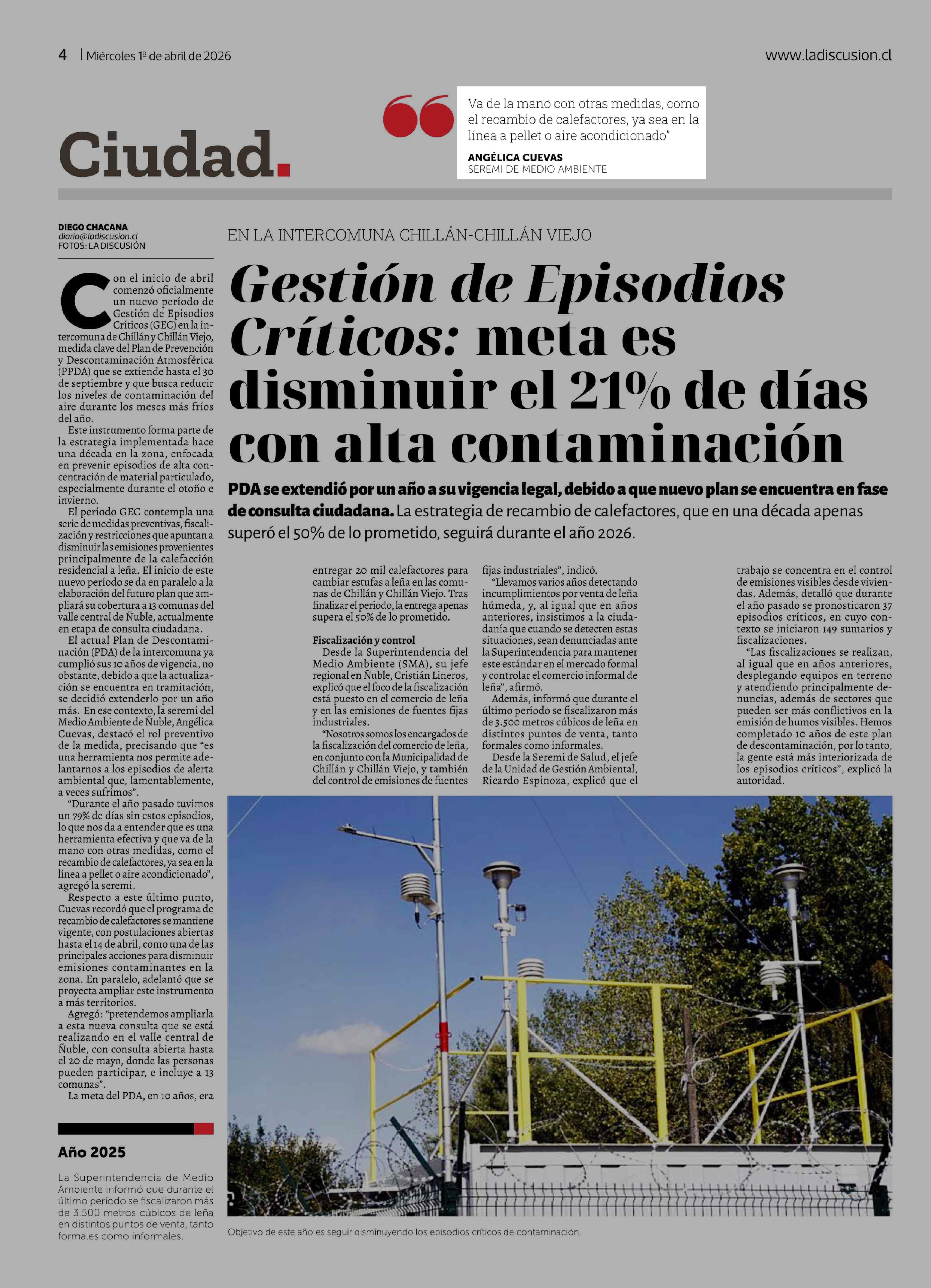 Fecha: 01-04-2026 Sector: Noticia general Región: Región del Ñuble