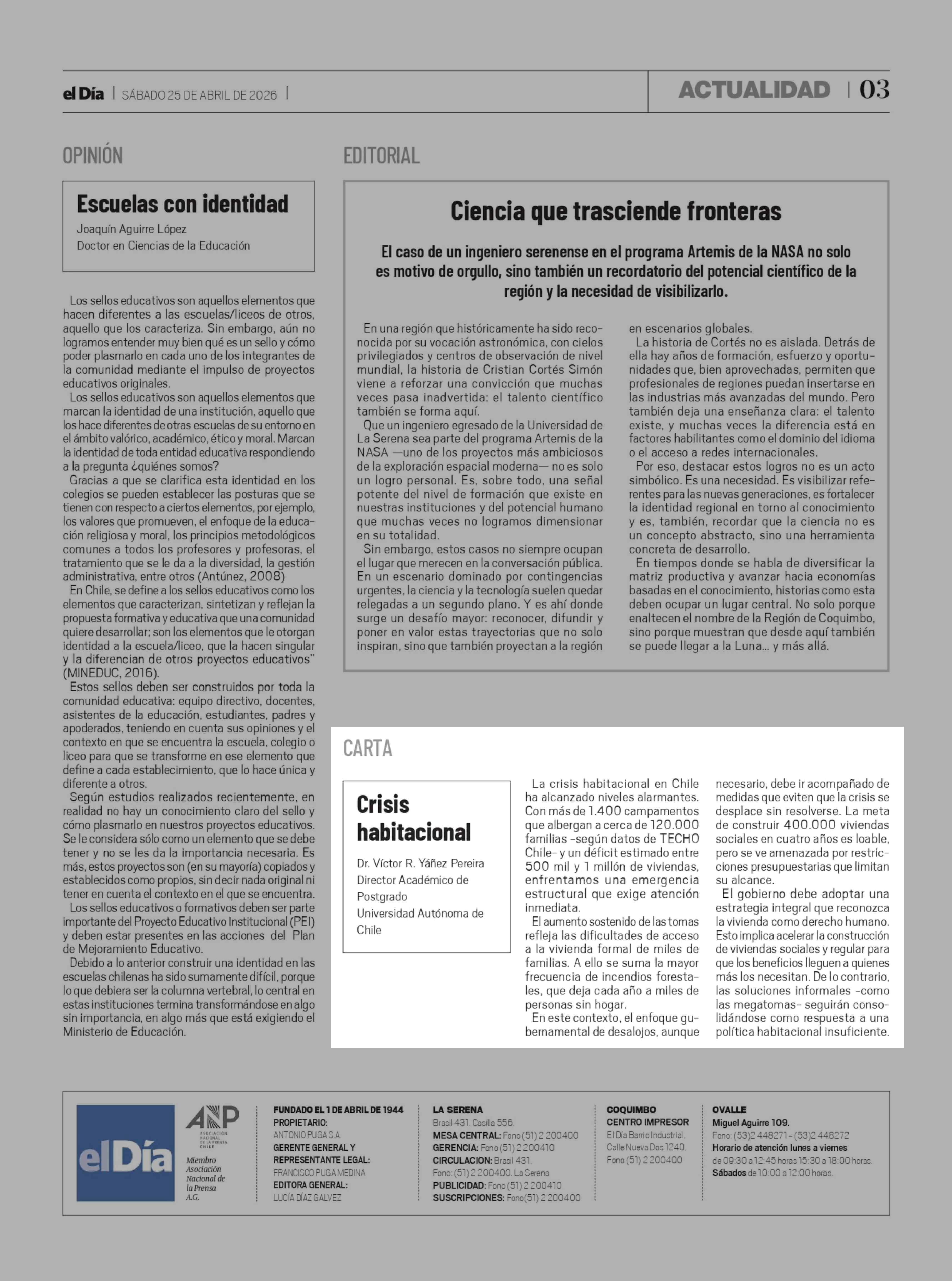 Cartas: Crisis habitacional 25-04-2026 El Día |
