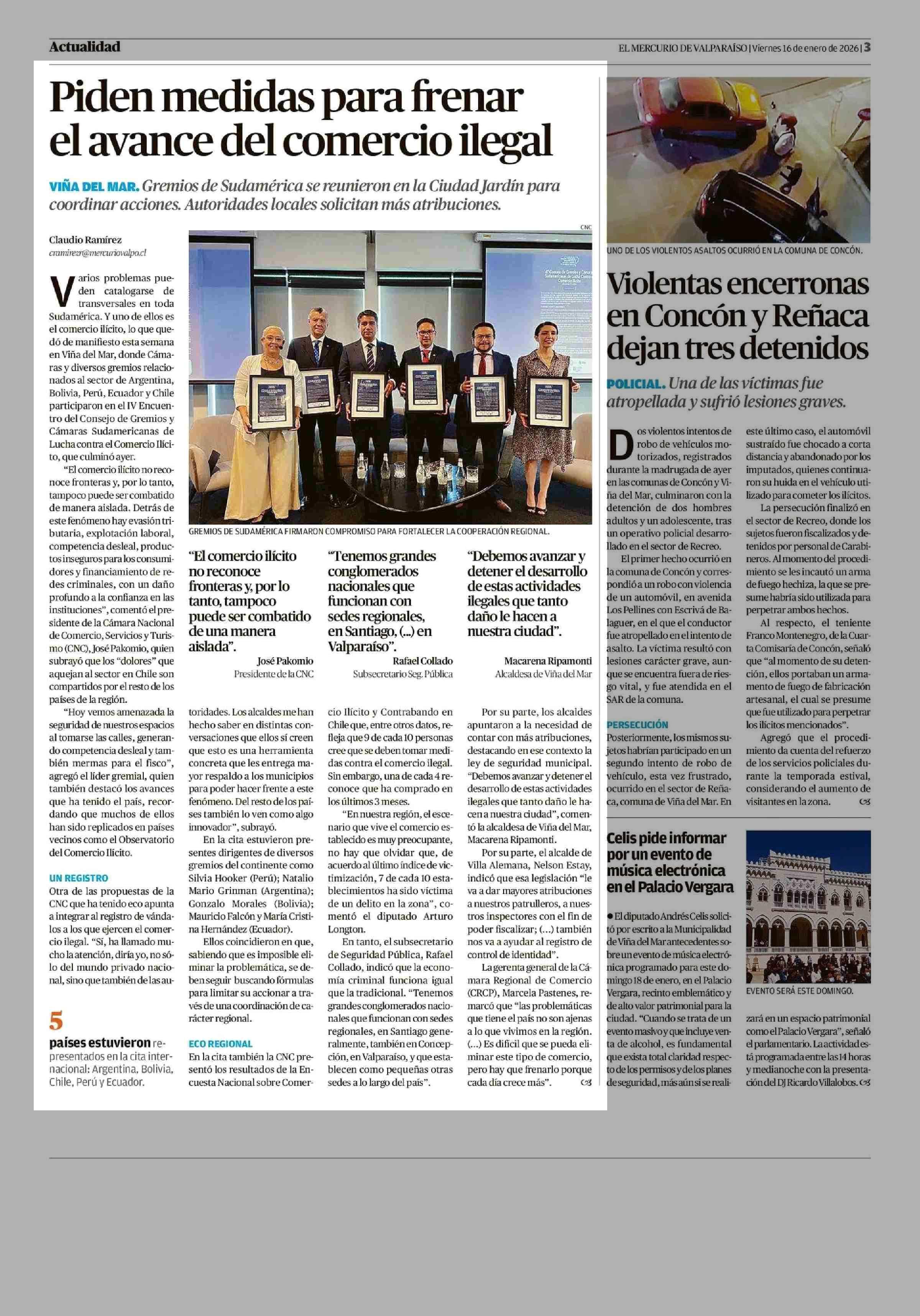 Piden medidas para frenar el avance del comercio ilegal 16-01-2026 El Mercurio de Valparaíso |