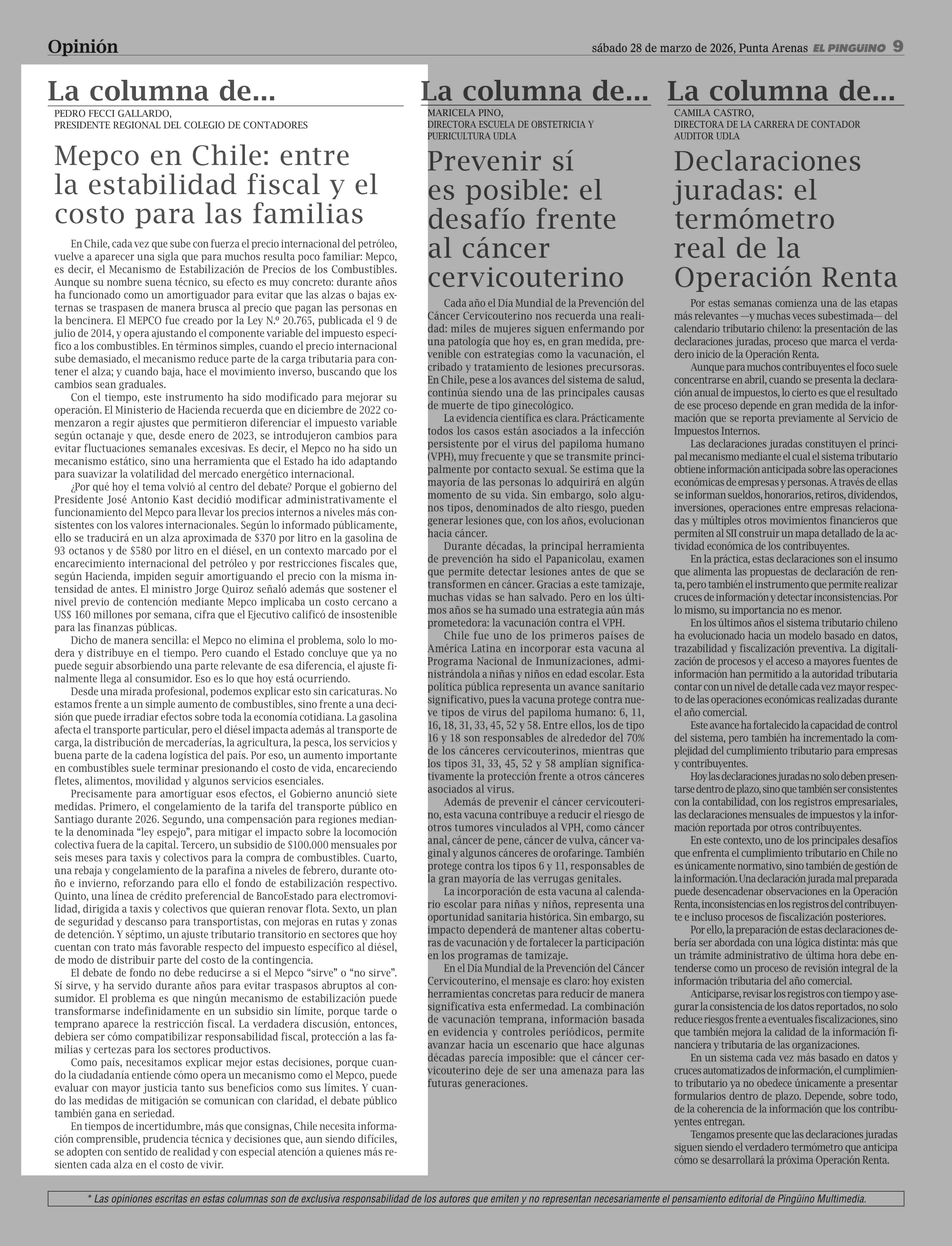 COLUMNAS DE OPINIÓN: Mepco en Chile entre la estabilidad fiscal y el costo para las familias 28-03-2026 El Pingüino |