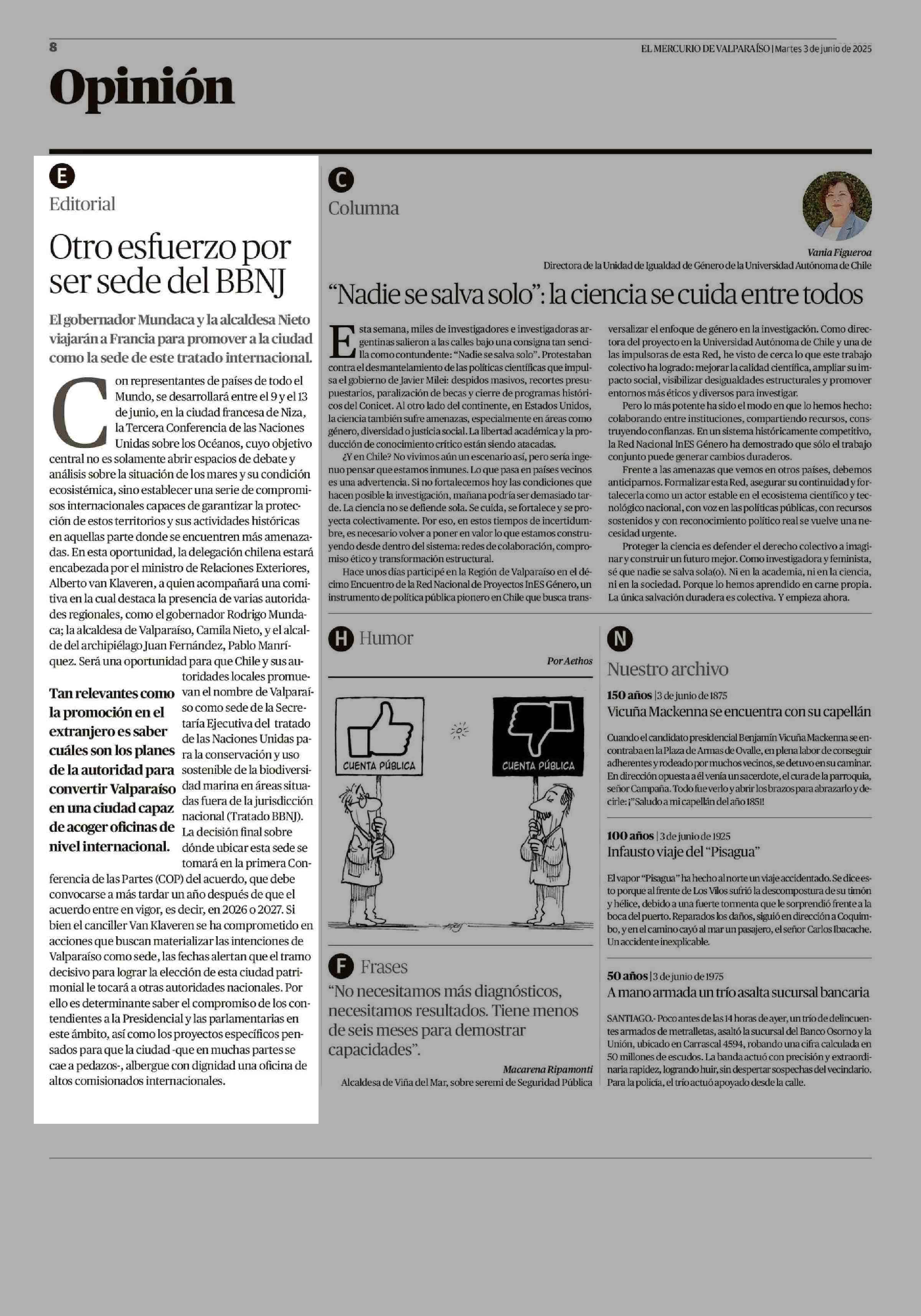 EDITORIAL: Otro esfuerzo por ser sede del BBNJ 03-06-2025 El Mercurio de Valparaíso |