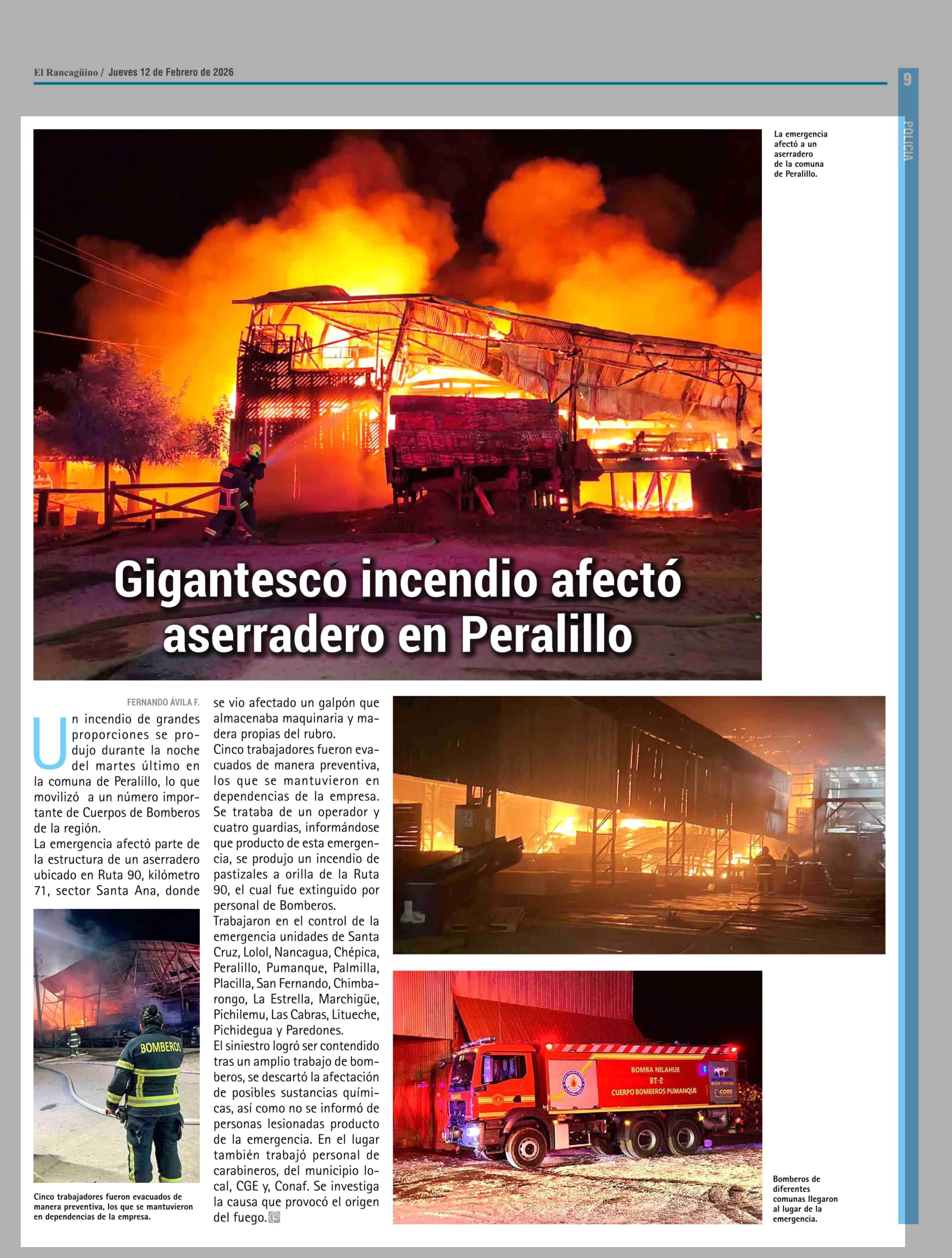 Gigantesco incendio afectó aserradero en Peralillo 12-02-2026 El Rancagüino |