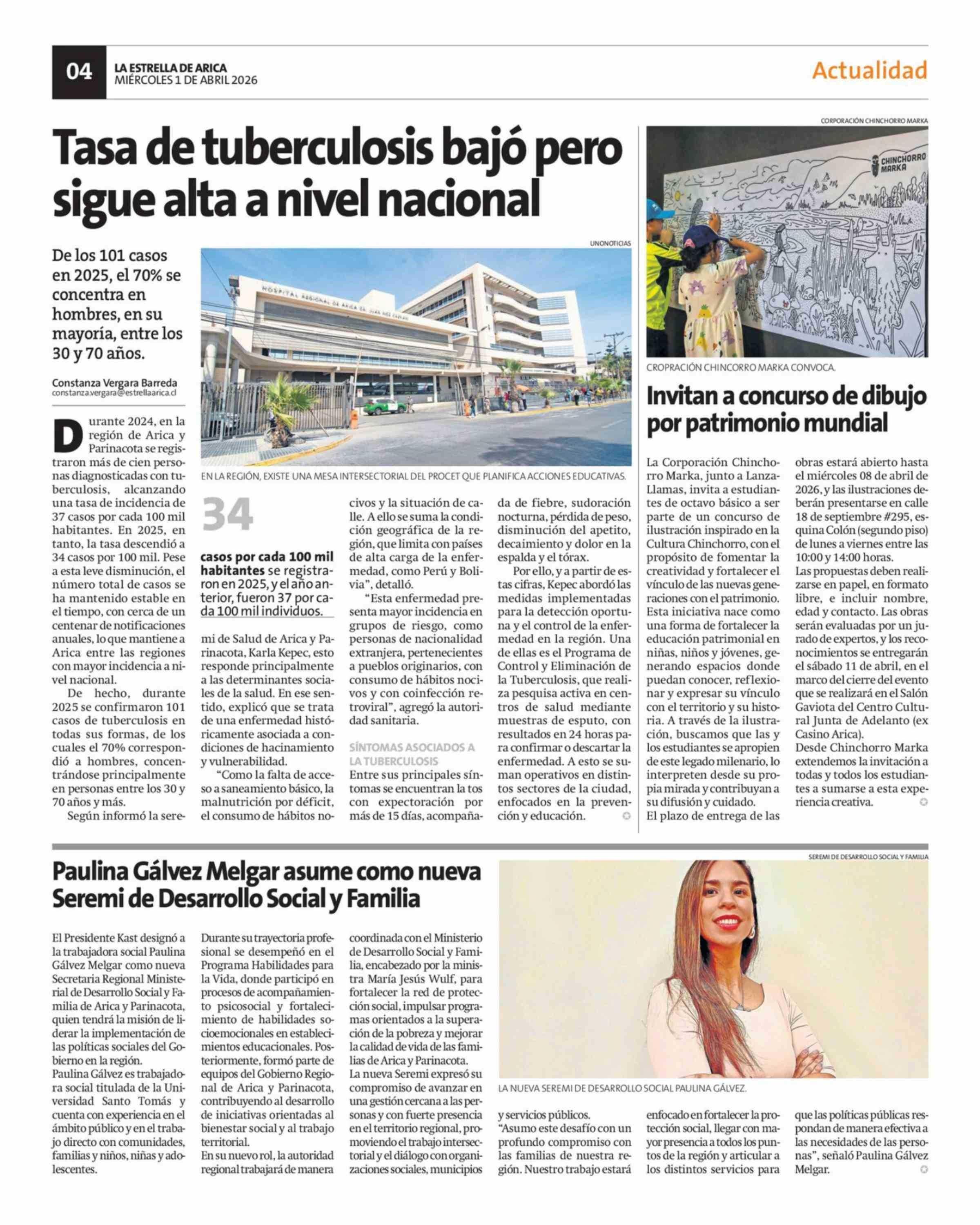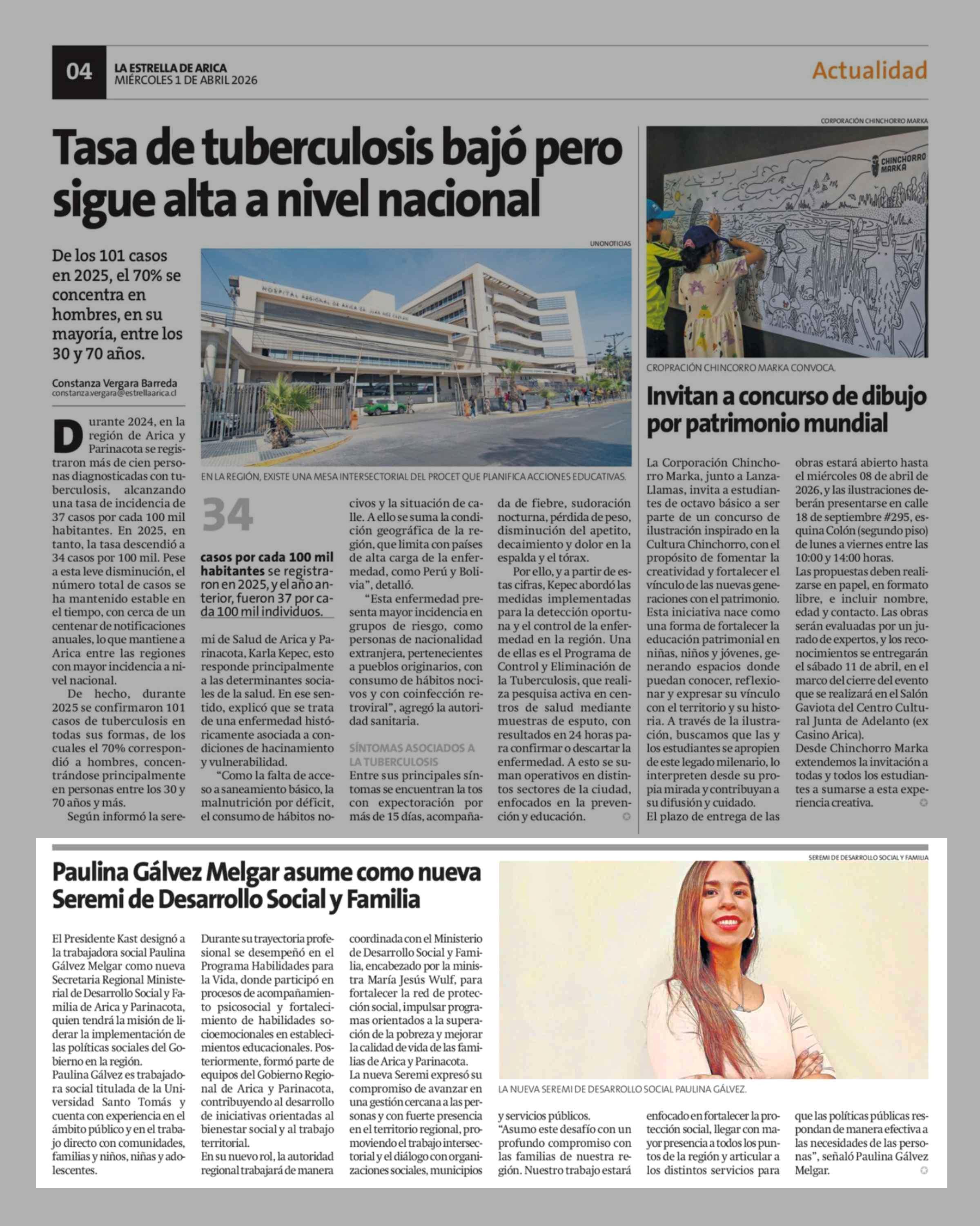 | Fecha: | 01-04-2026 | Sector: | Noticia general | Región: | Región de Arica y Parinacota |
