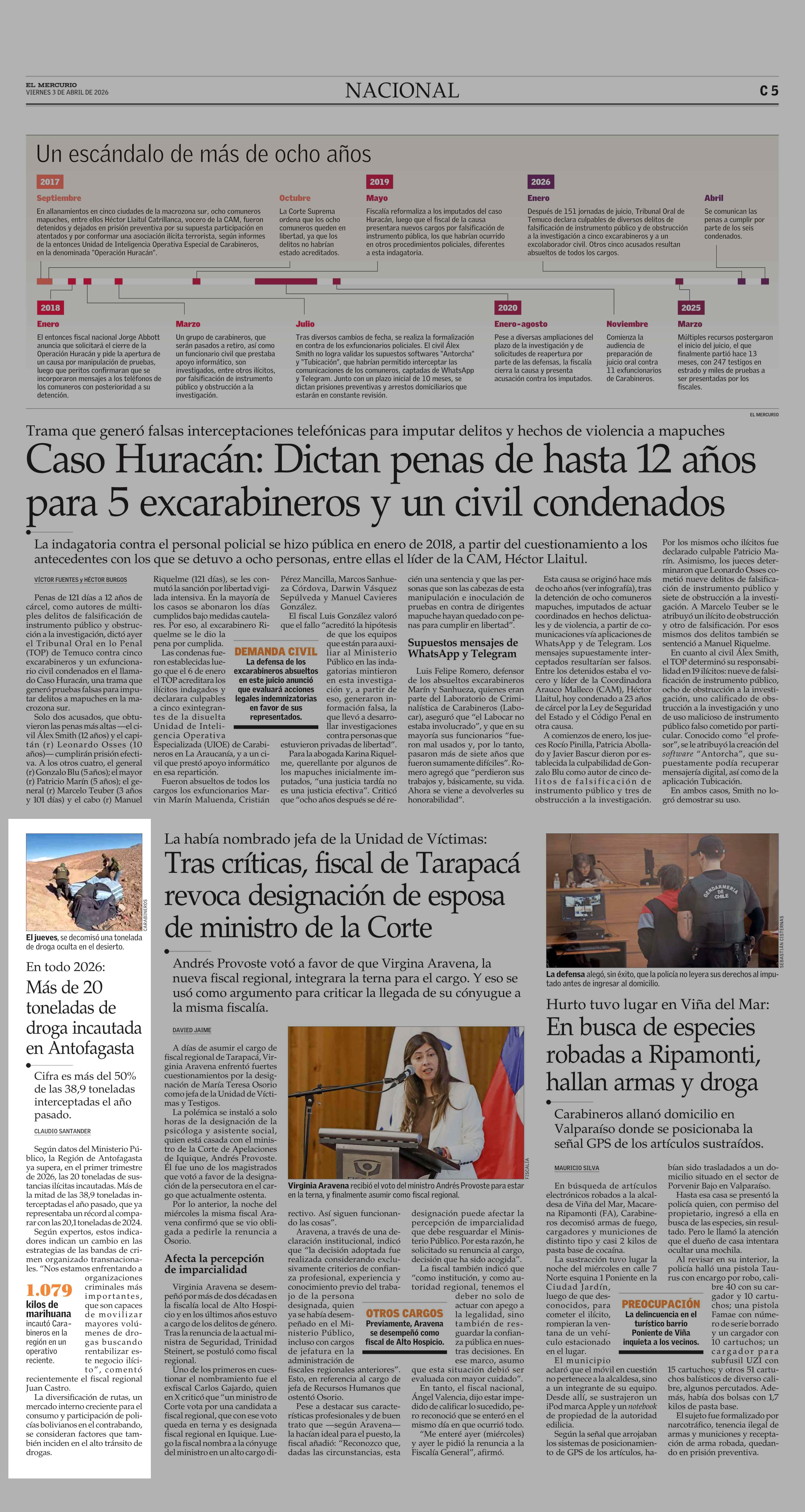 Más de 20 toneladas de droga incautada en Antofagasta 03-04-2026 El Mercurio |